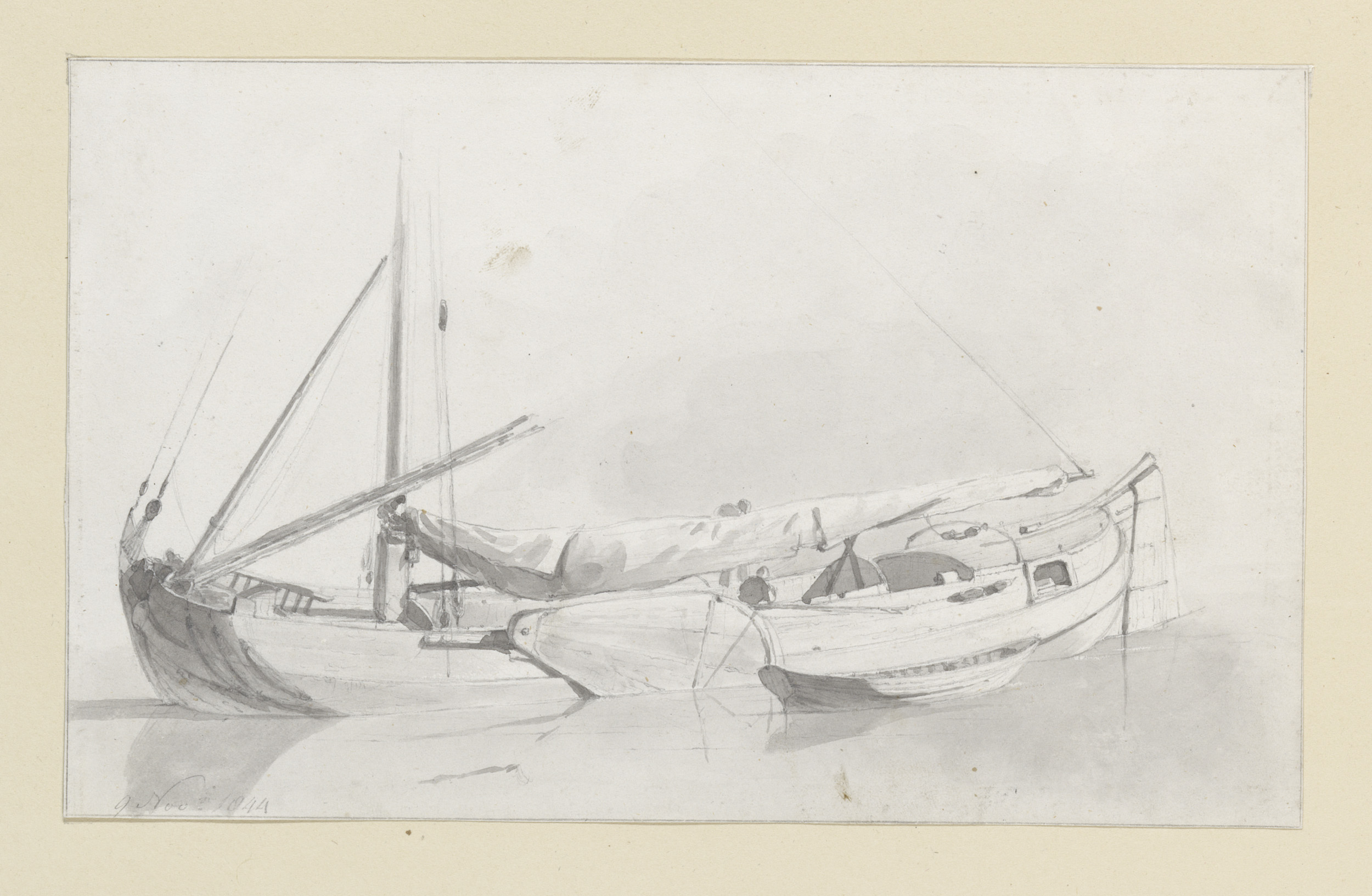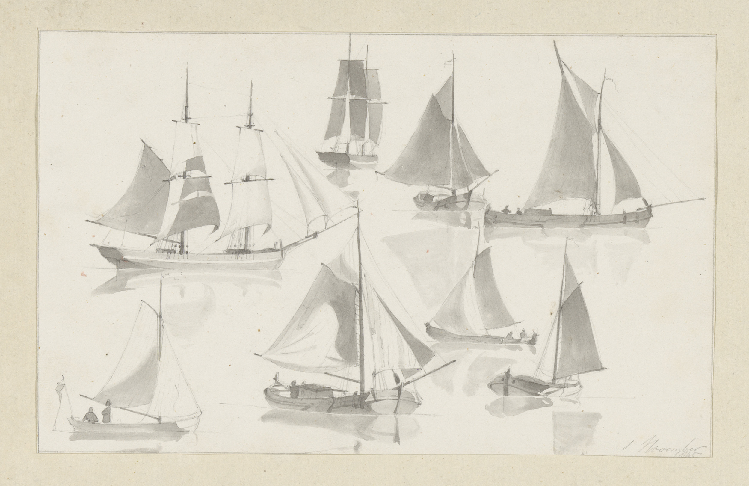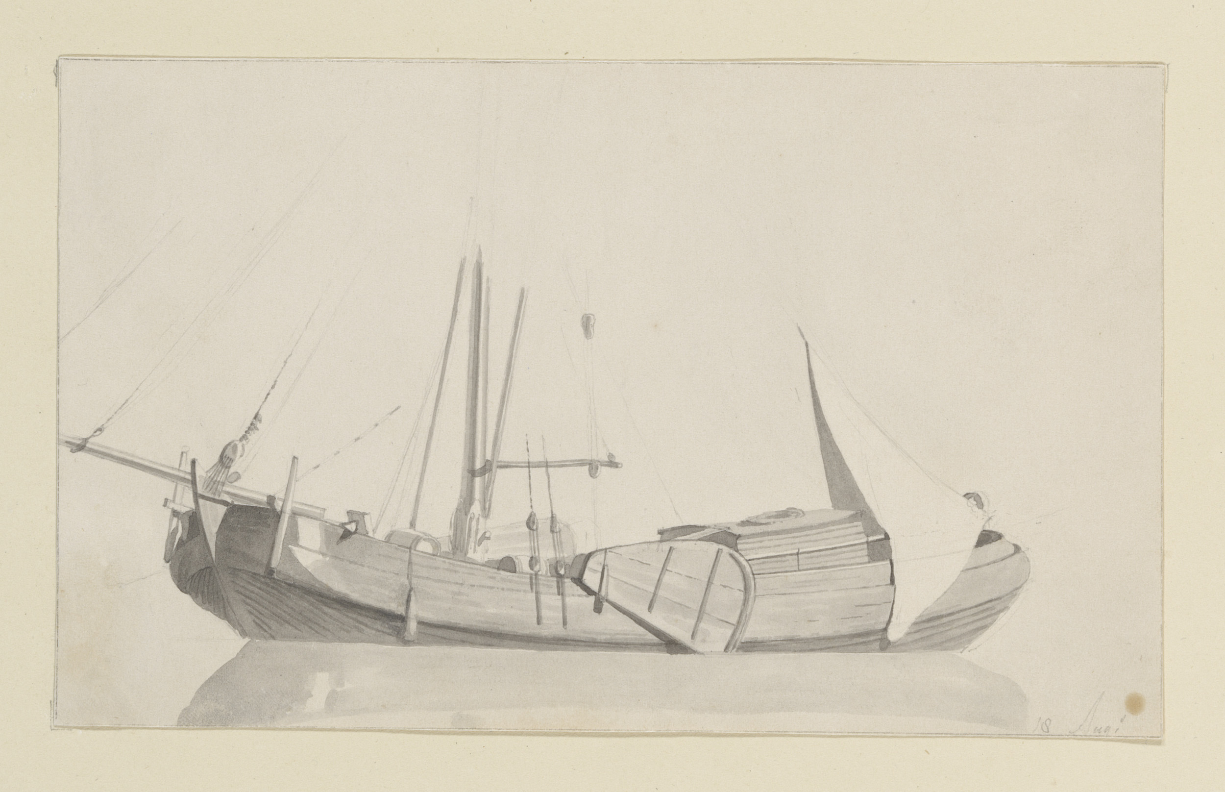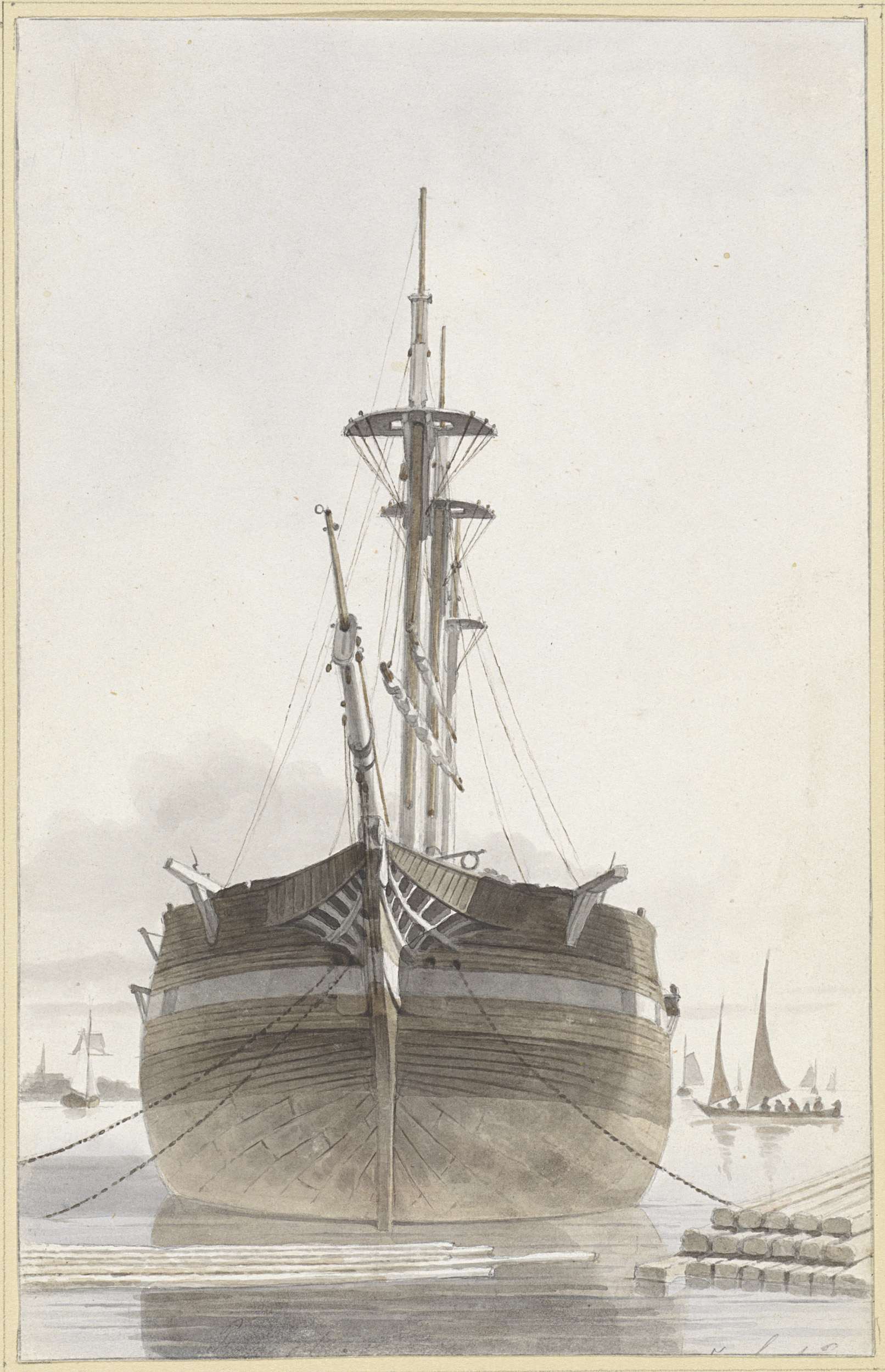 Driemaster onder noodtuig, een haven binnenlopend me...