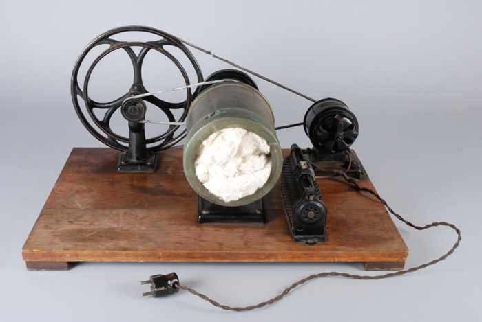 Centfrifuge (?), schakelaar en elektromotor op een p...