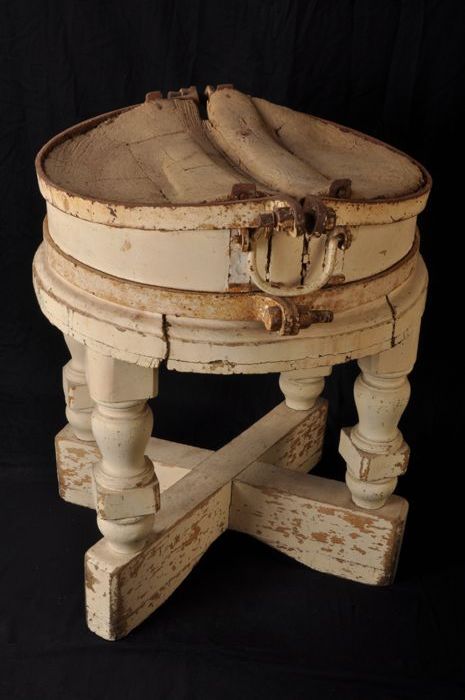 Groene, houten kist met 18 metalen ringen, gebruikt ...