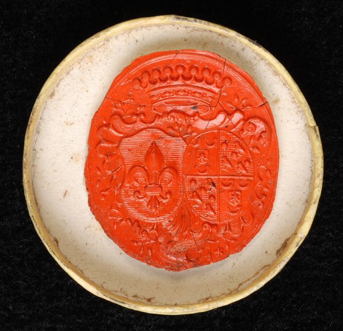 Lakzegel met familiewapen, alliantiewapen van Gevers...