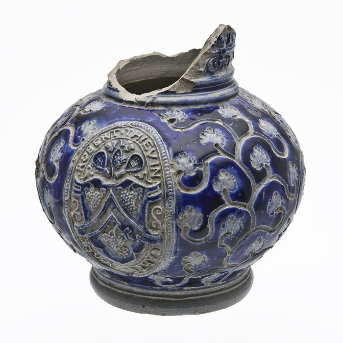 Steengoed buikkan met tekst, medaillon, sgraffito en...