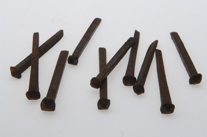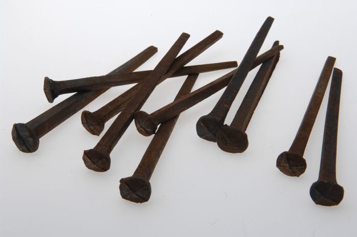 Gesmede, vierkante nagels, afkomstig uit smederij