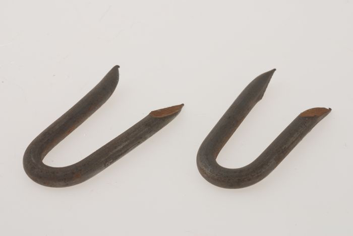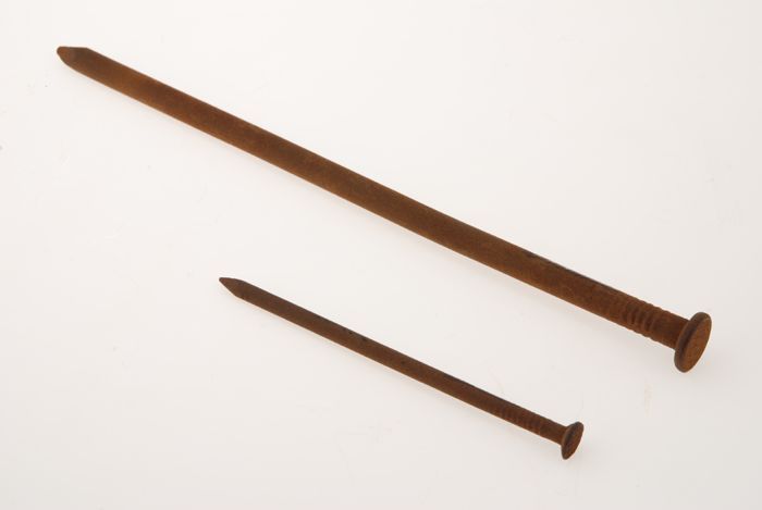 Twee spijkers of draadnagels, afkomstig uit smederij