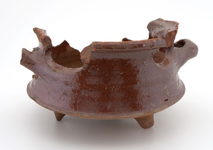 Fragment aardewerk komfoor met vier gaten in zijwand...