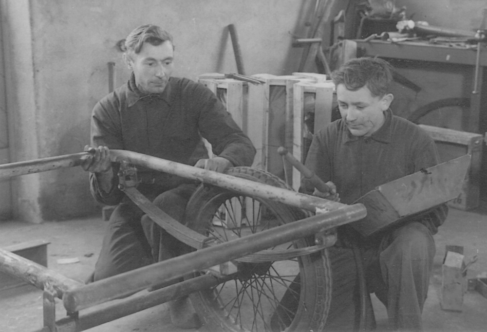 Winkel en werkplaats van de rijwielhersteller Conraa...