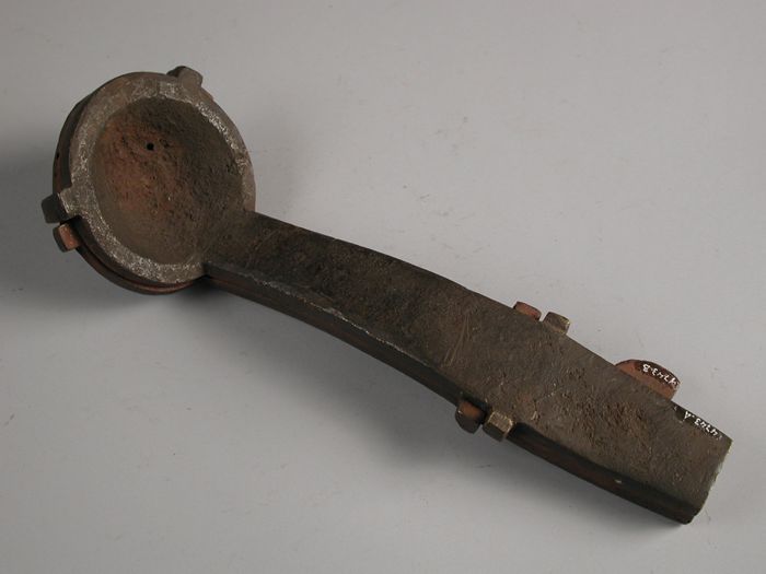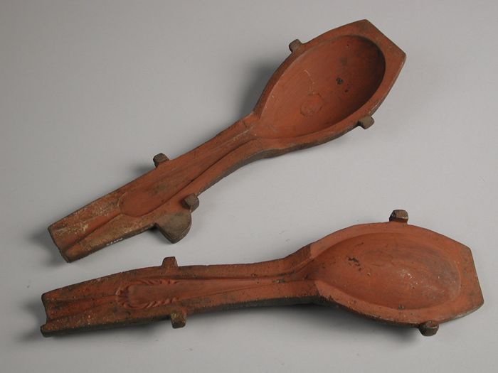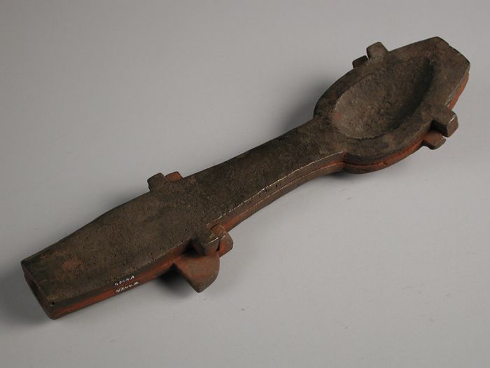 Tweedelige bronzen mal voor opscheplepel met bladran...
