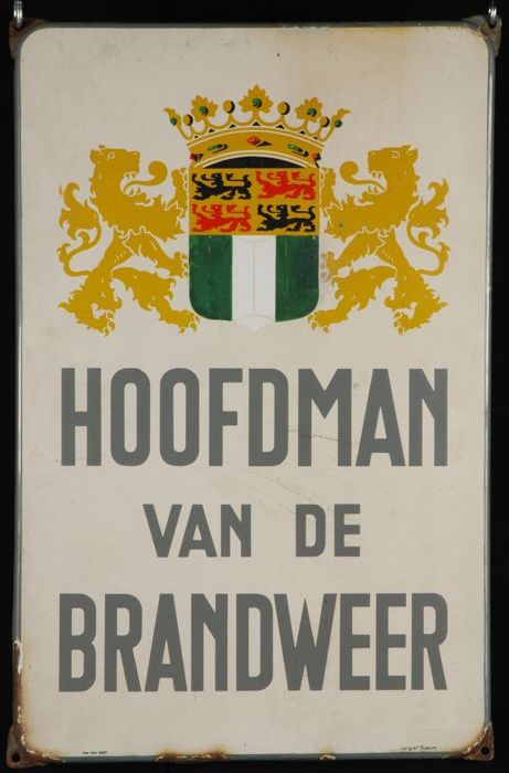 Emaille wandbord "HOOFDMAN VAN DE BRANDWEER"
