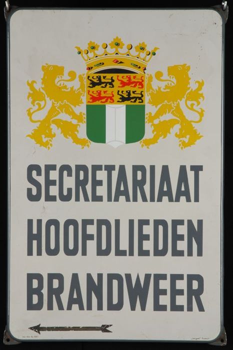Emaille wandbord "SECRETARIAAT HOOFDLIEDEN BRANDWEER"