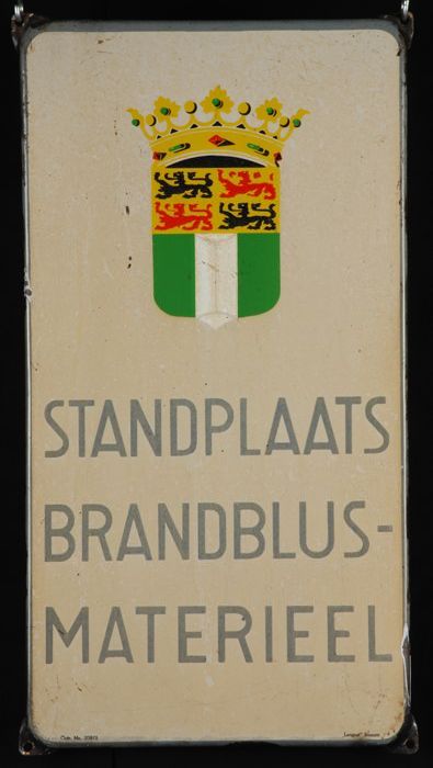 Emaille wandbord "STANDPLAATS BRANDBLUS-MATERIEEL"