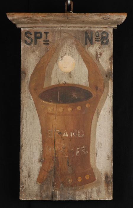 Houten wandbord "SPt No 8", "BRAND MEESTER"