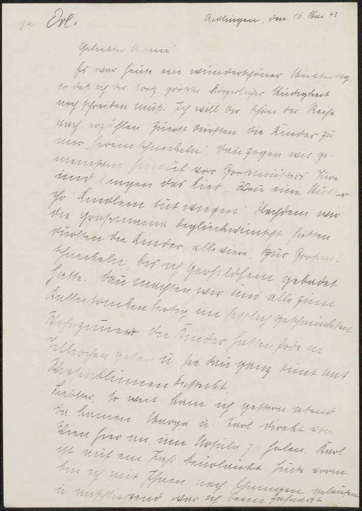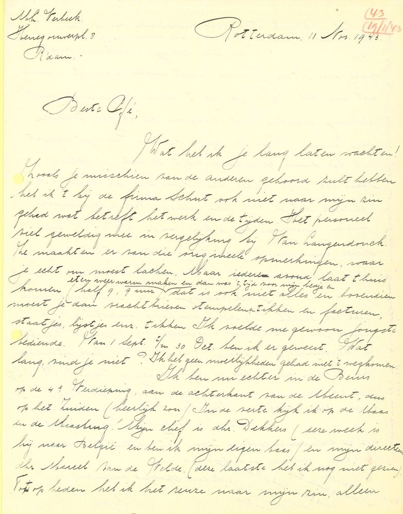 Brief aan Hubert van Ella d.d. 16-05-1943