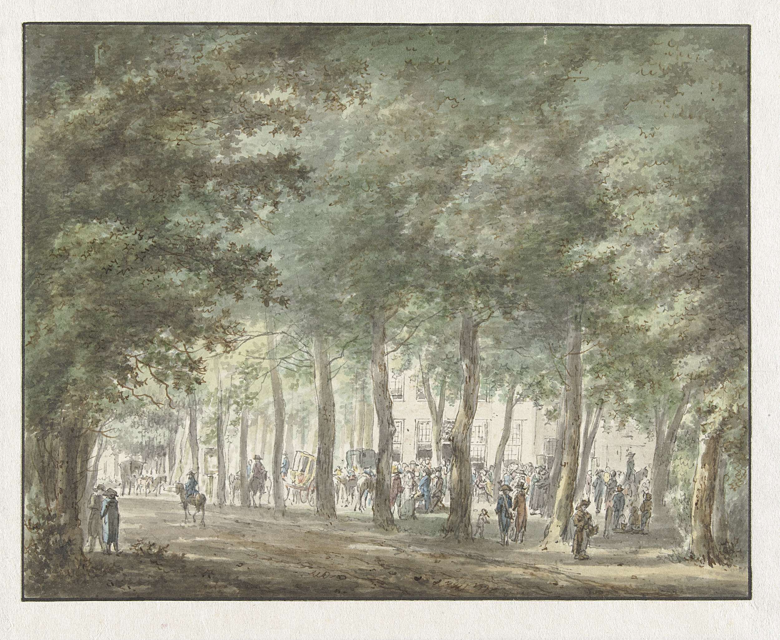 Gezicht in de Haarlemmerhout, met een menigte mensen...