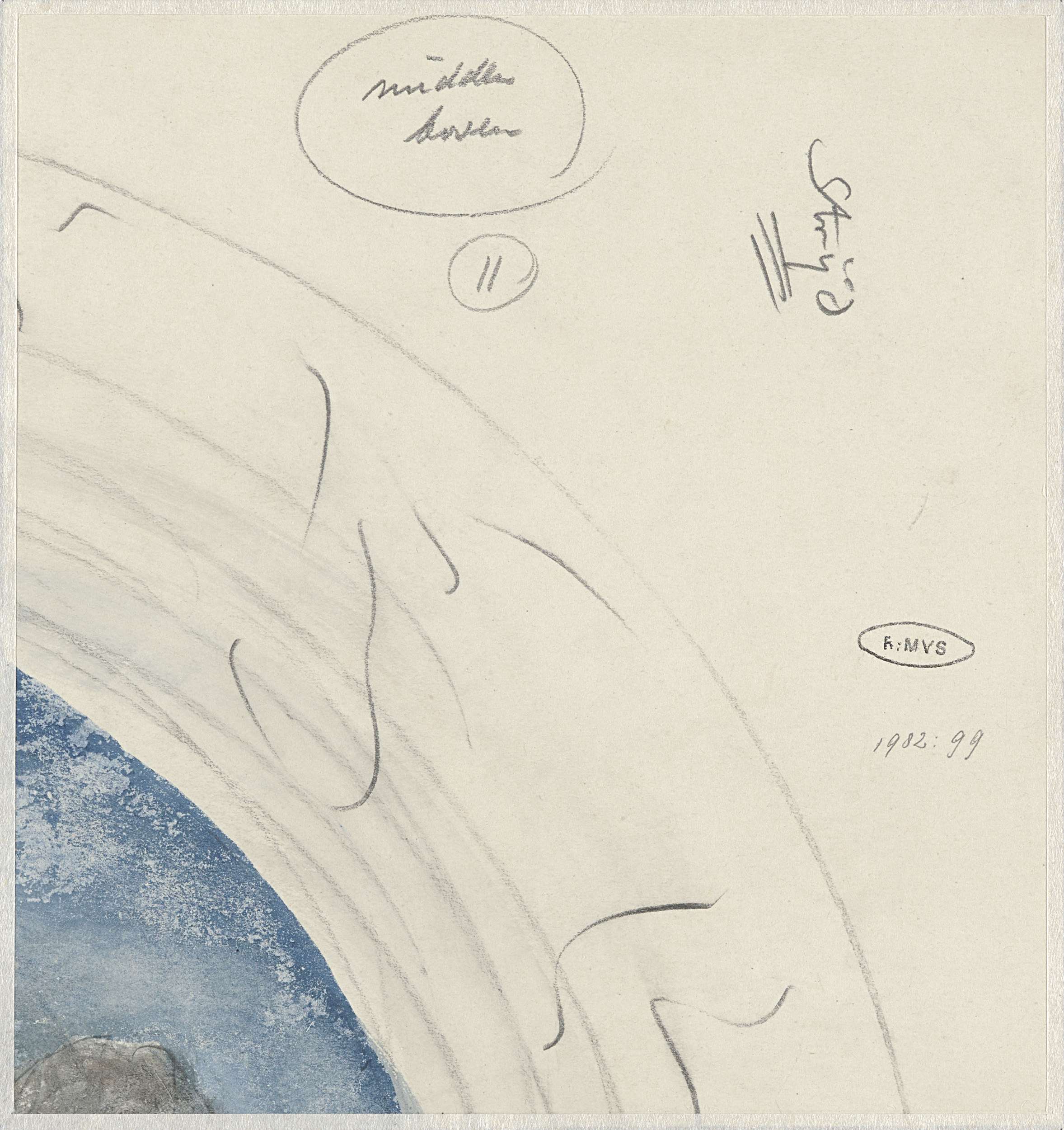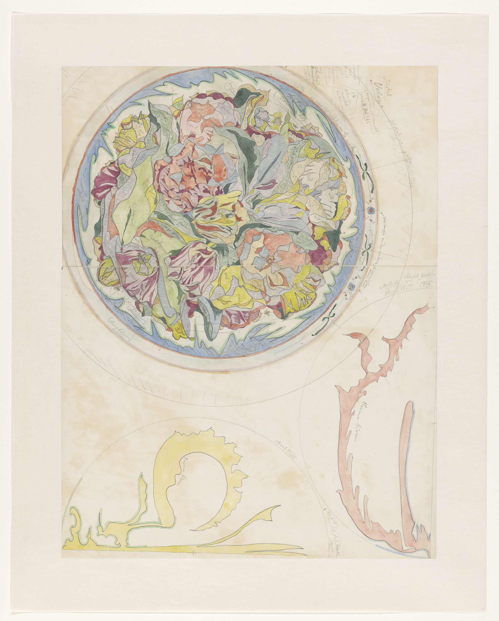 Drie ontwerpen voor aardewerkdecoratie voor schotel