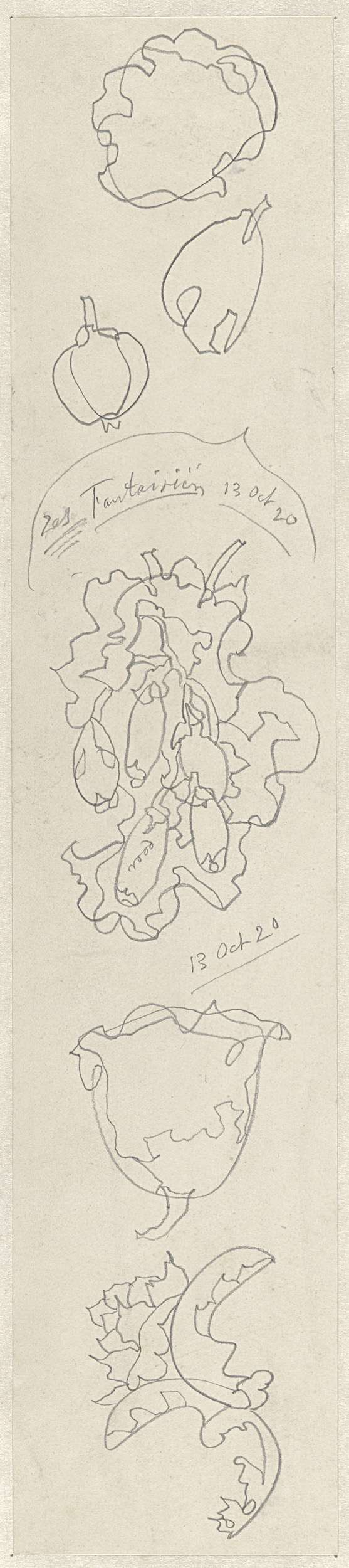 Ontwerpen voor aardewerkdecoratie: appel, druif, bes...