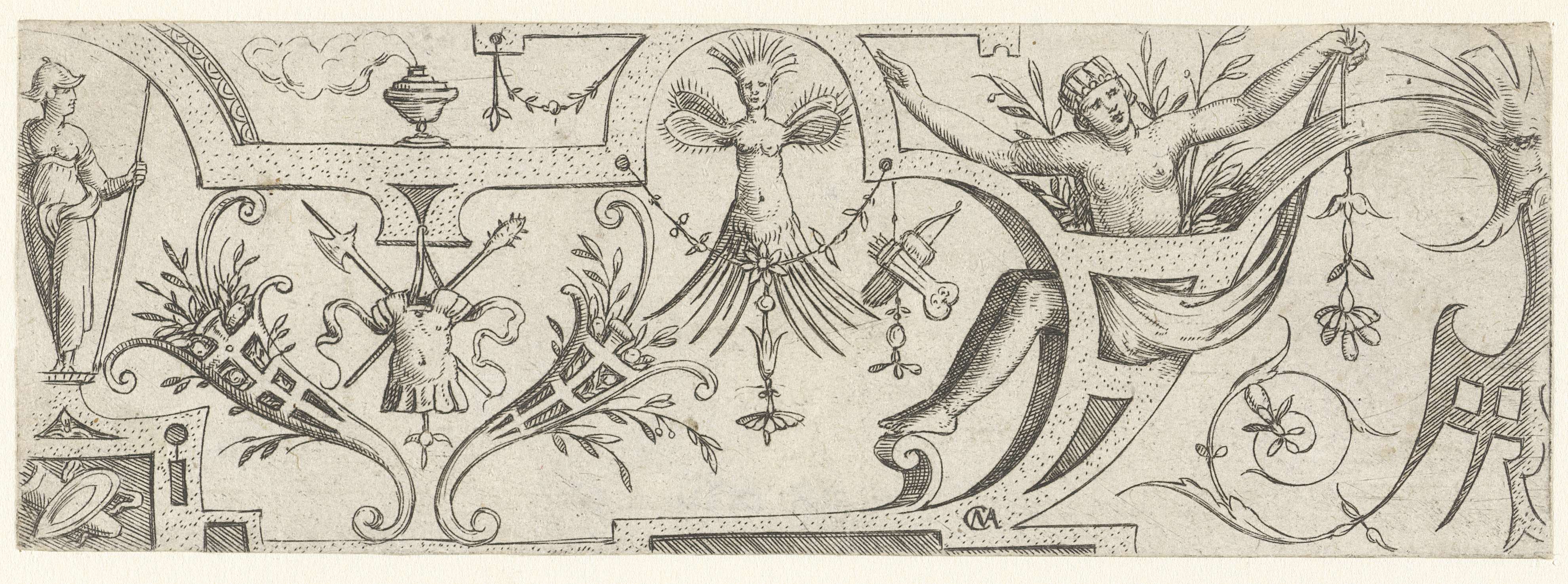 Ornament met Minerva en een naakte vrouw