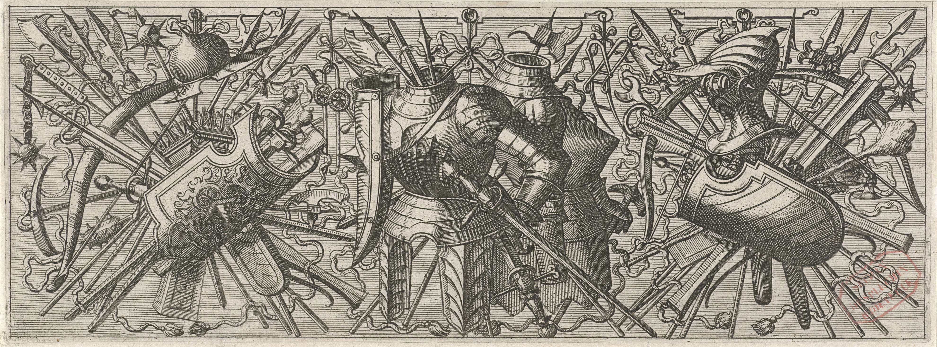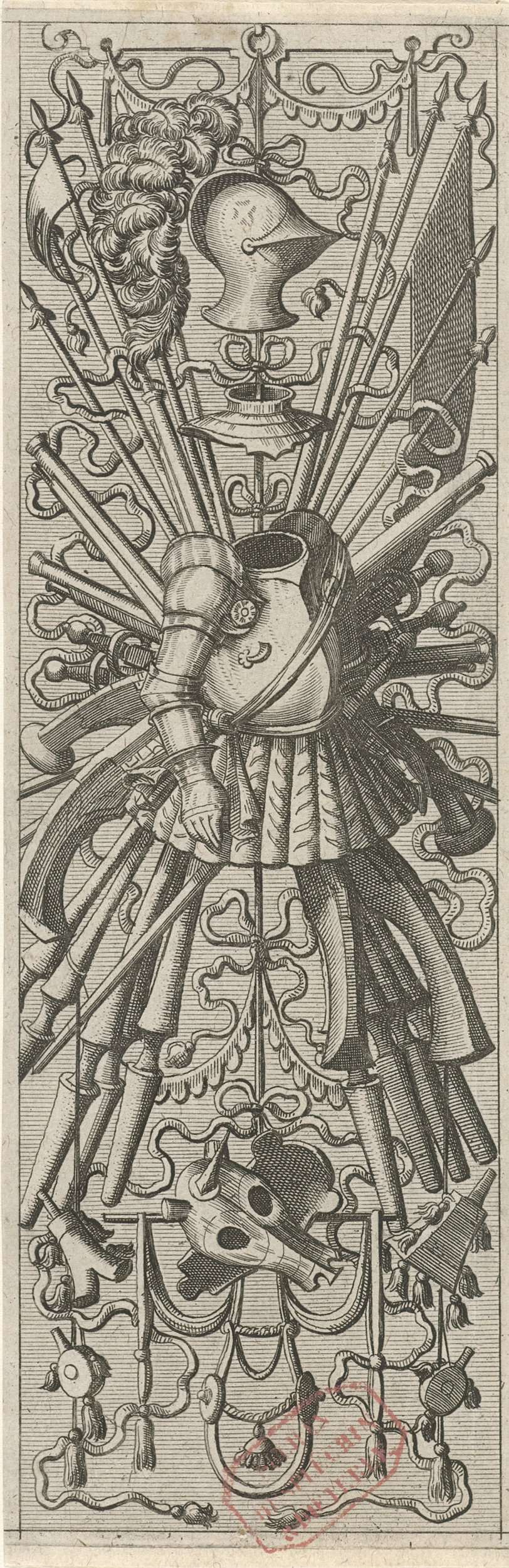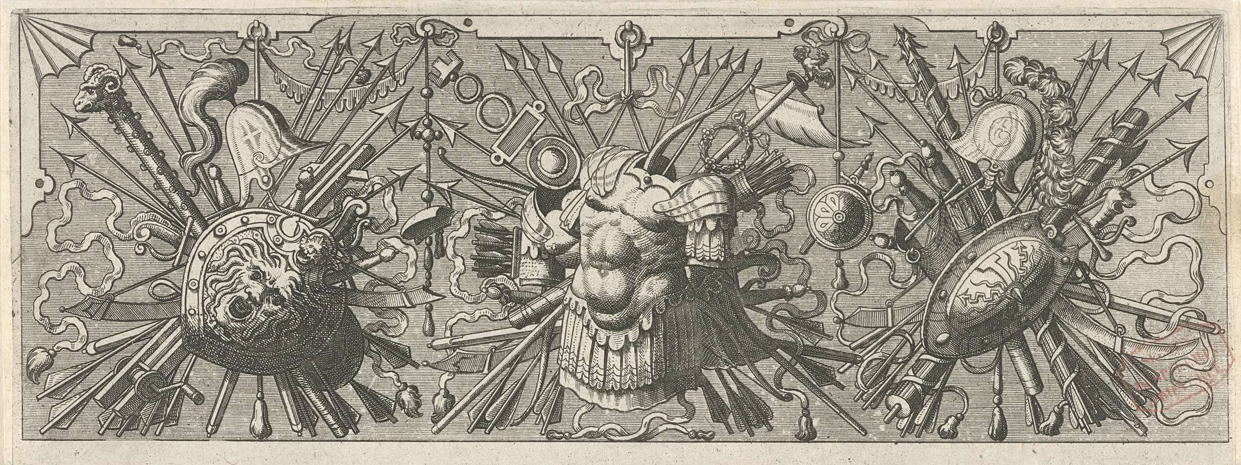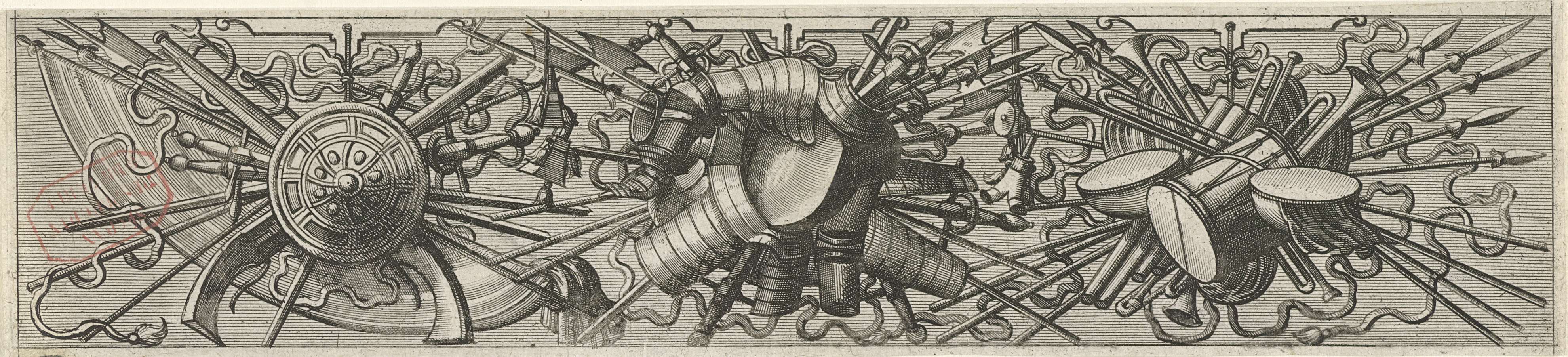 Vlakdecoratie, bestaande uit een wapentrofee