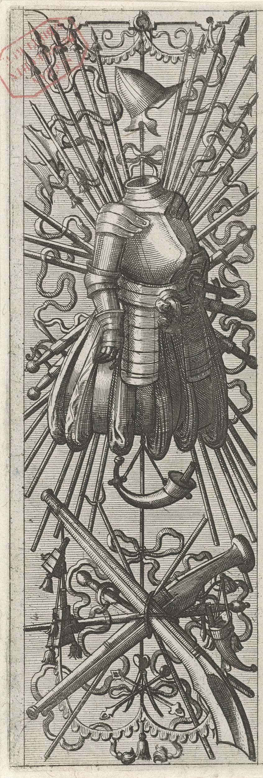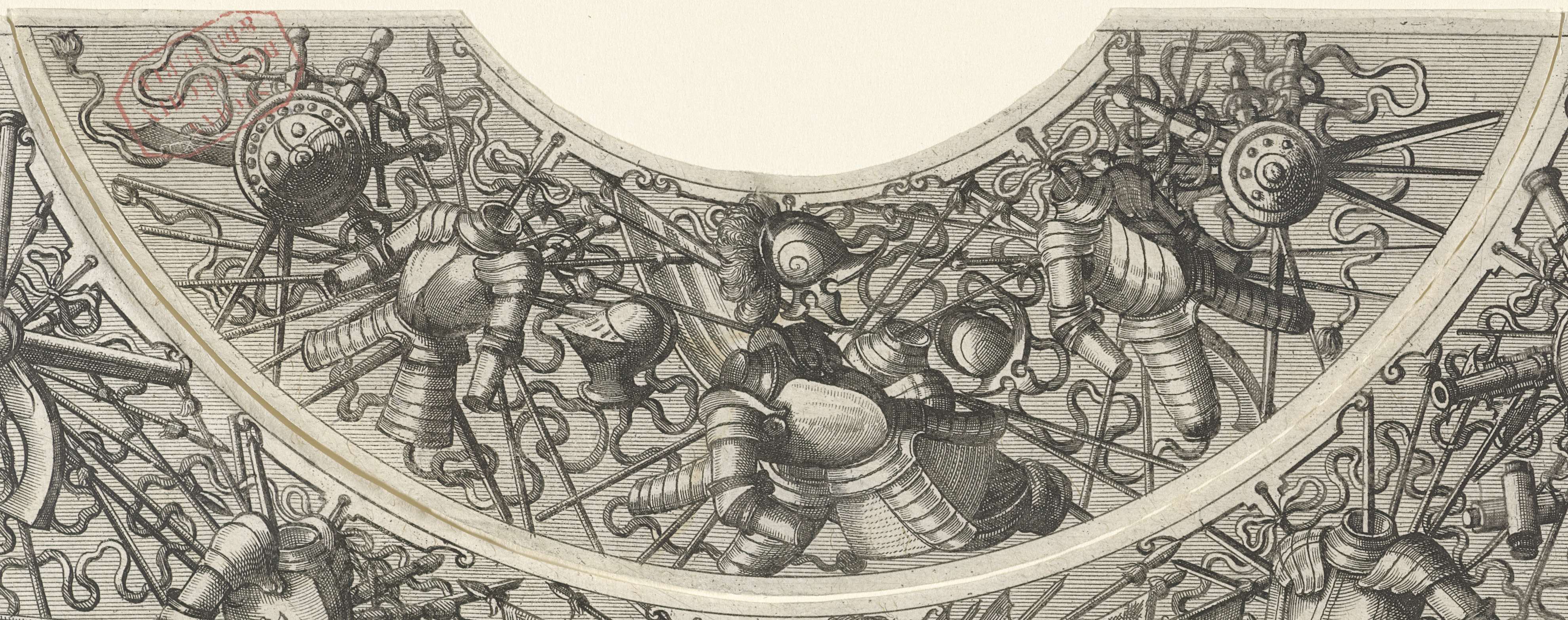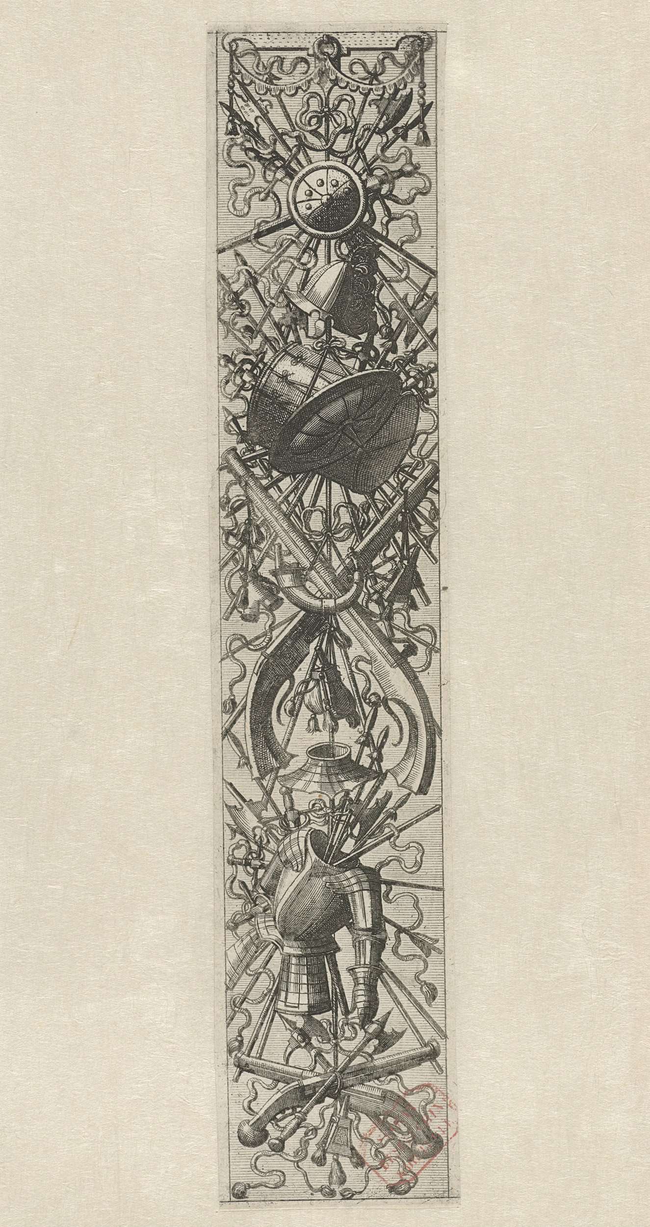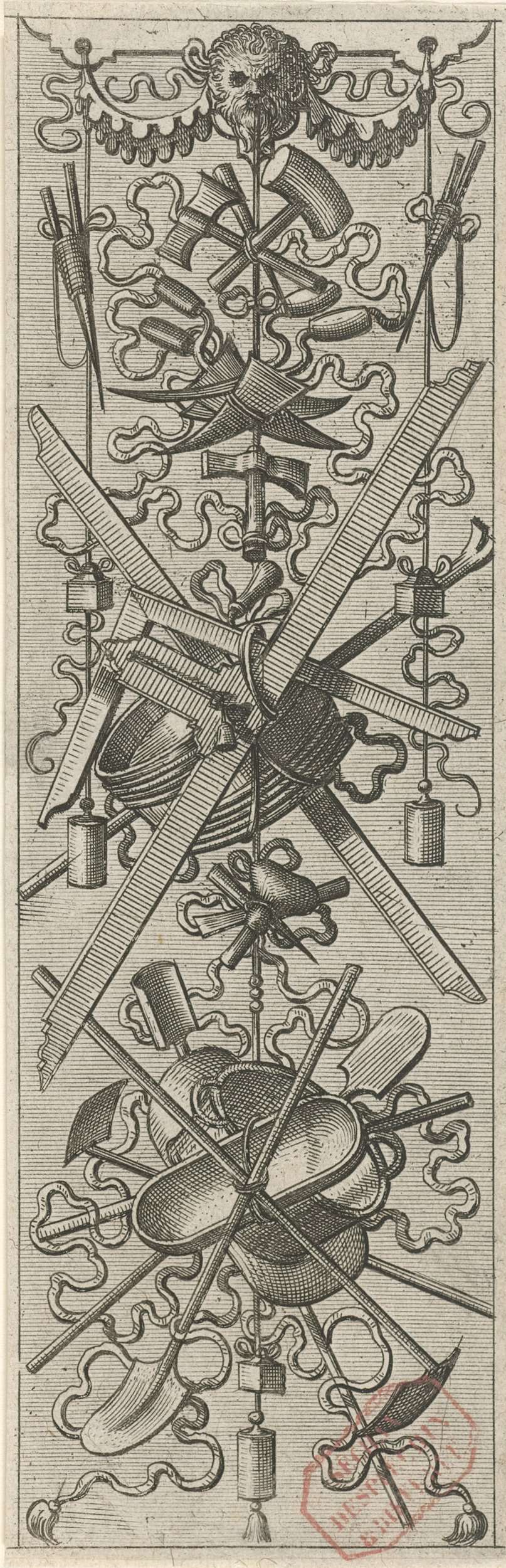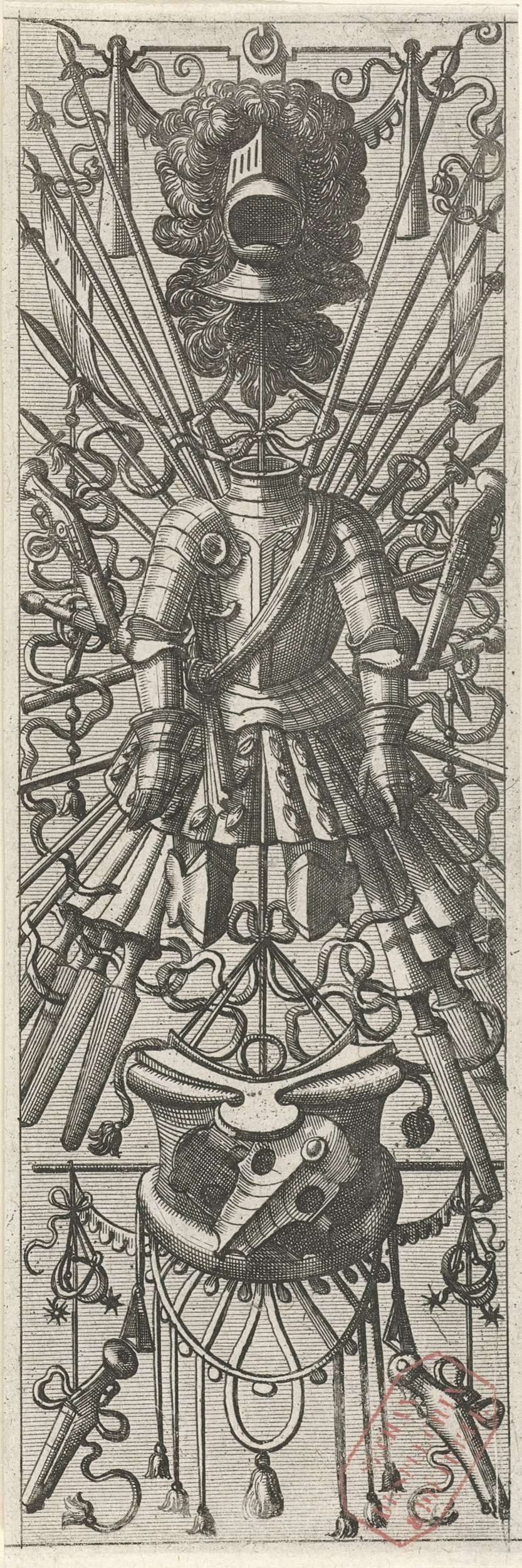 Vlakdecoratie, bestaande uit een wapentrofee