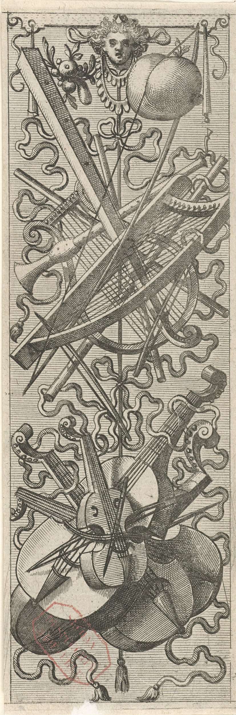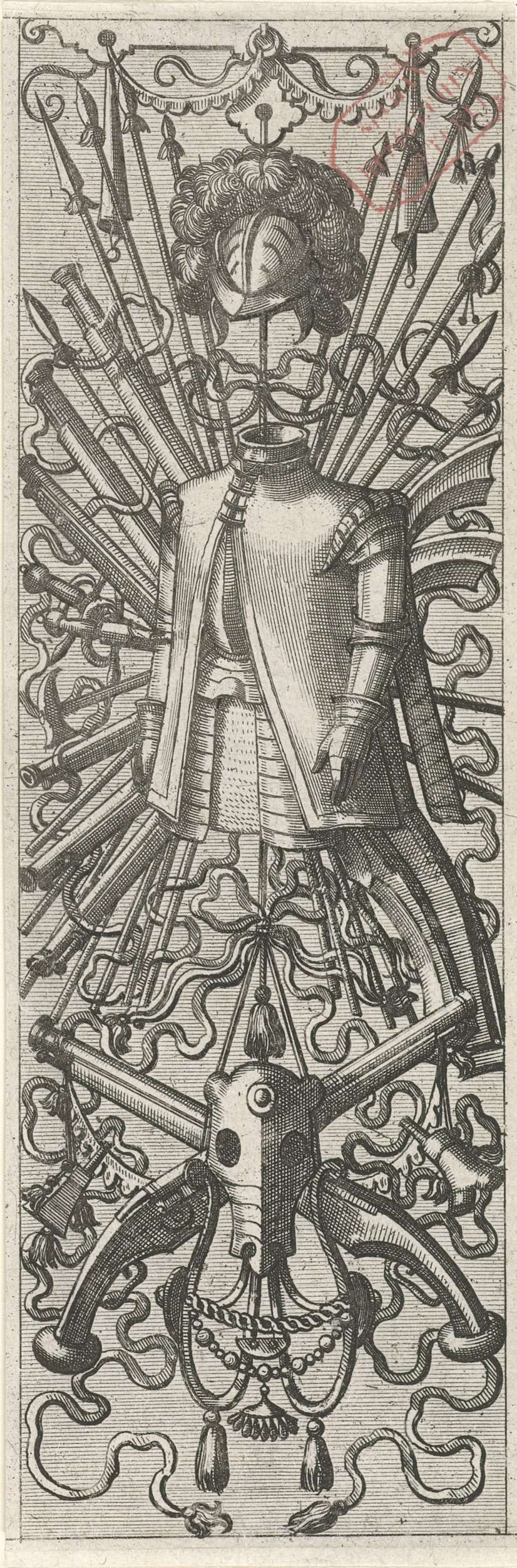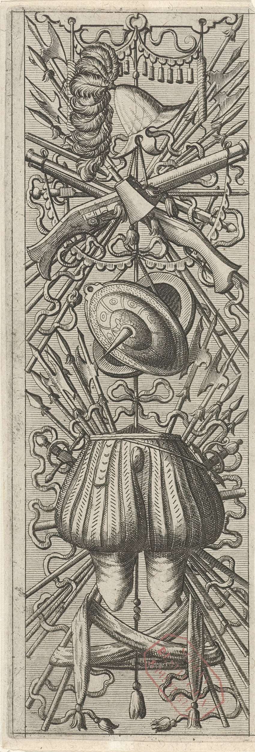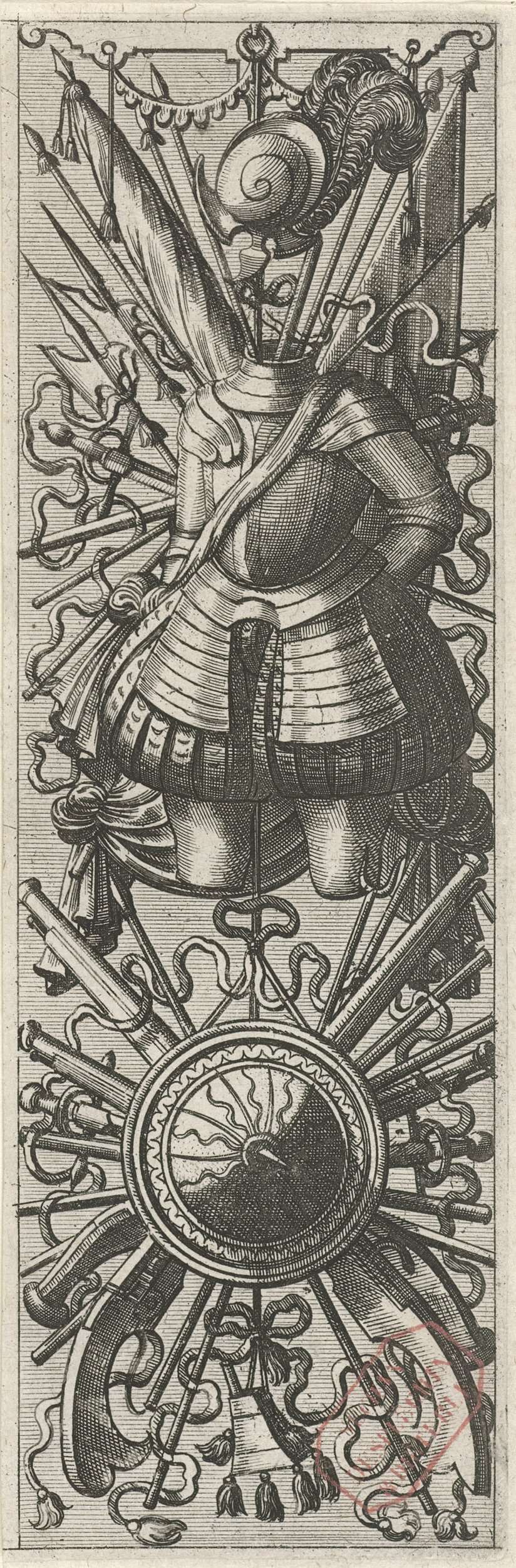 Vlakdecoratie, bestaande uit een wapentrofee
