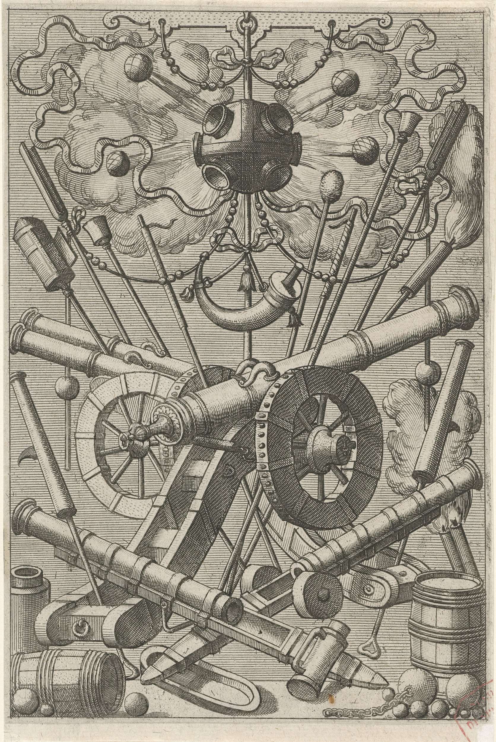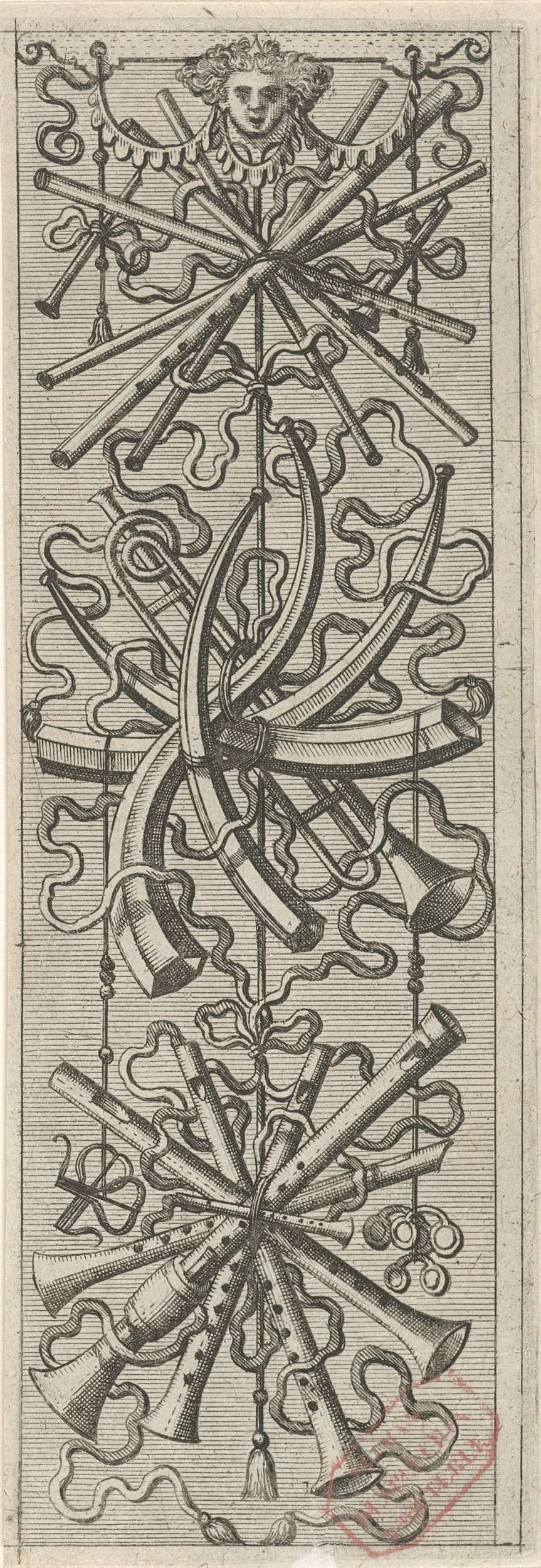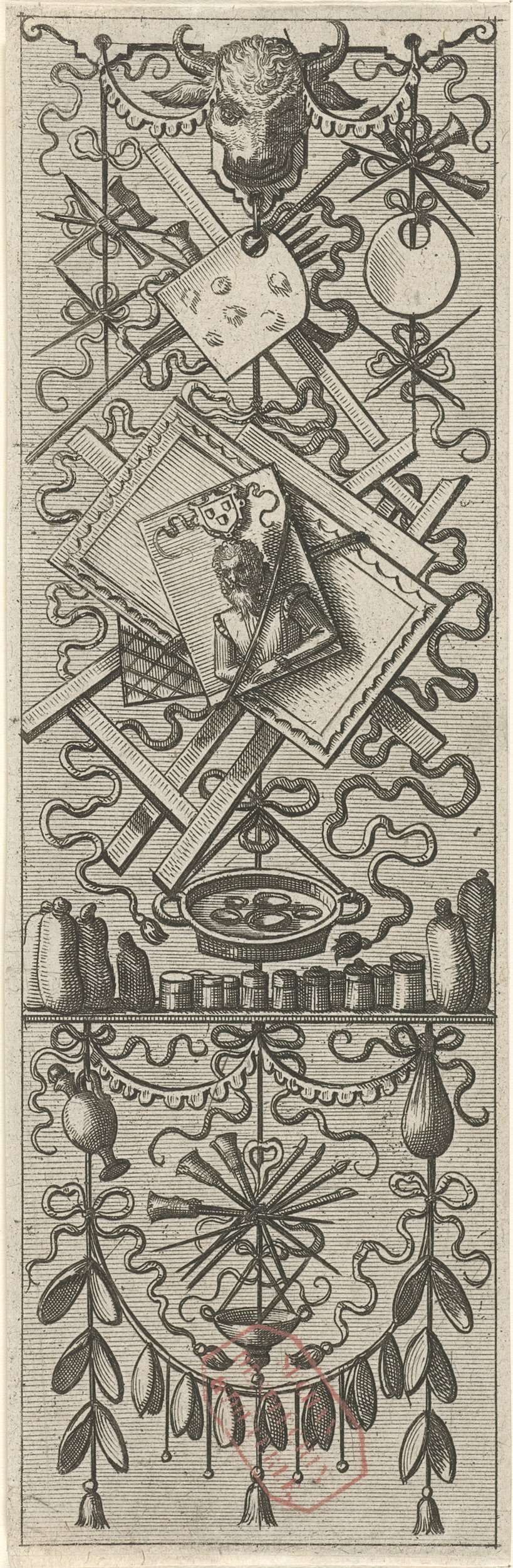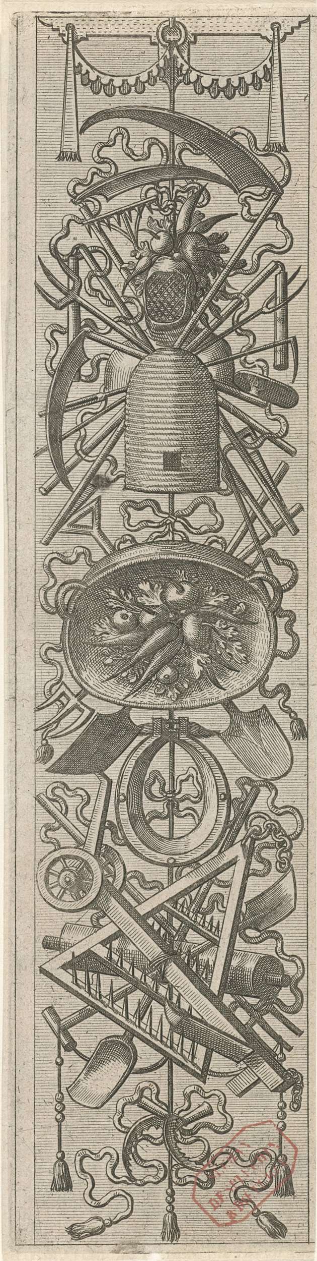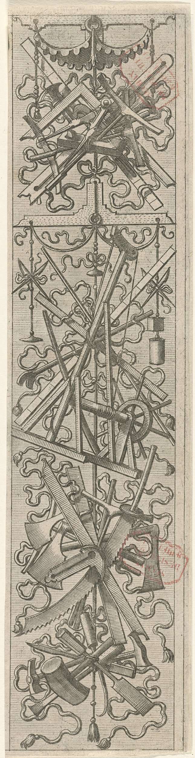 Vlakdecoratie, bestaande uit een wapentrofee