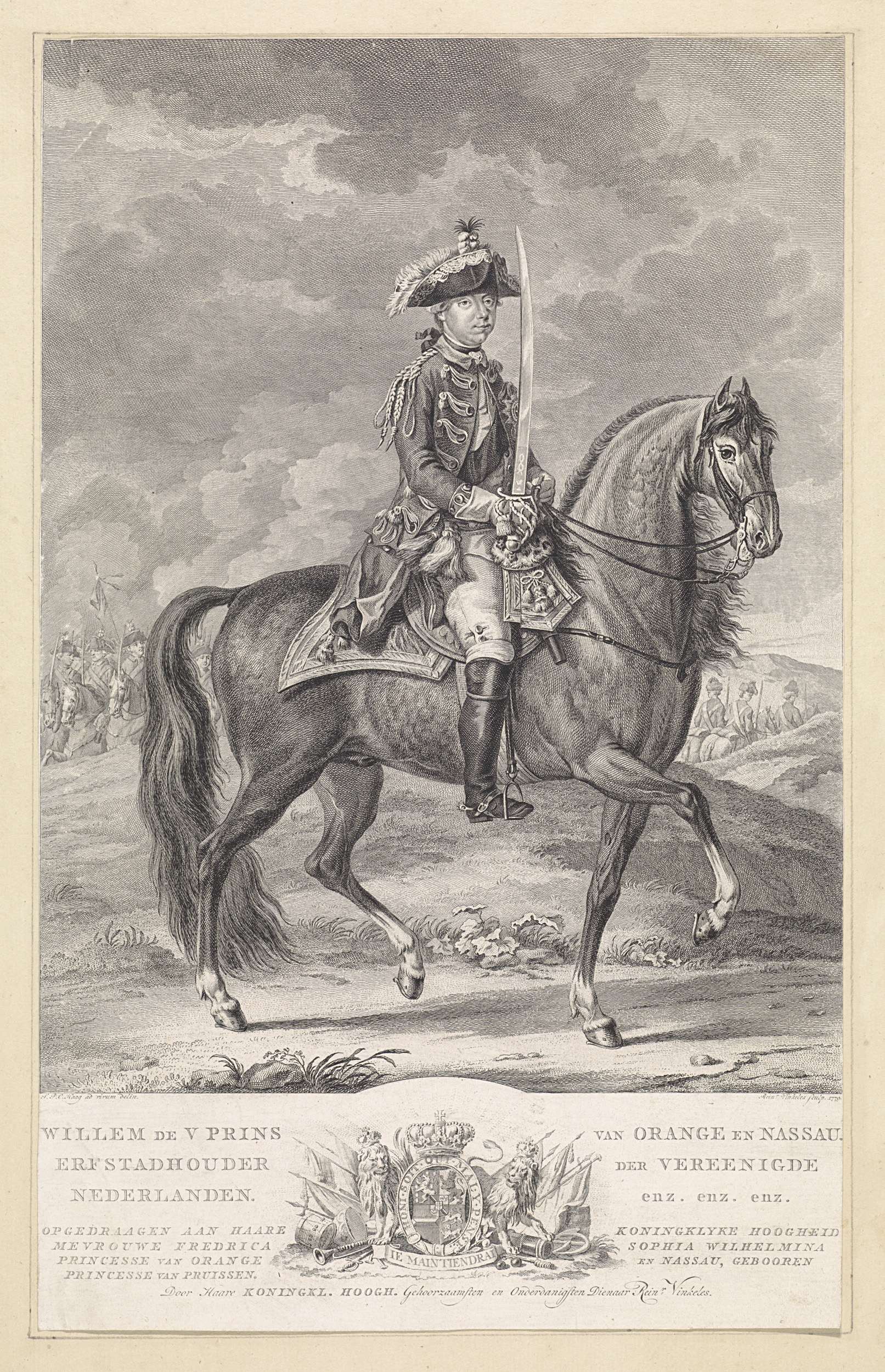 Portret van Willem V, prins van Oranje-Nassau te paard