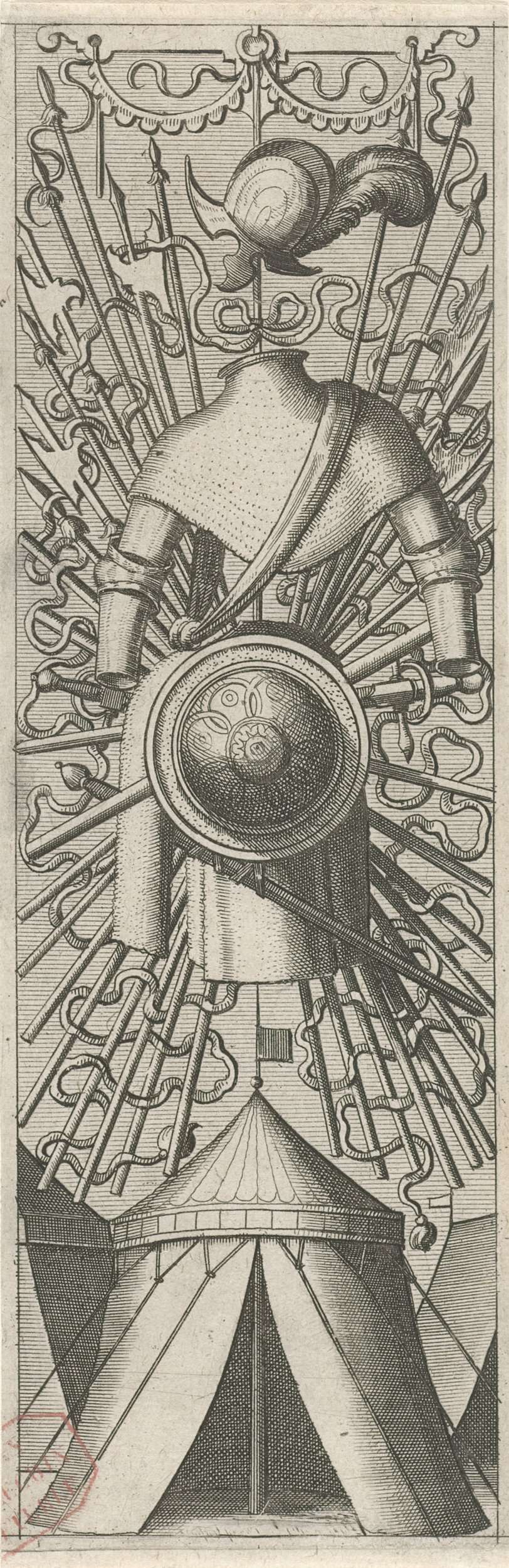 Wapentrofee met onderaan een tent