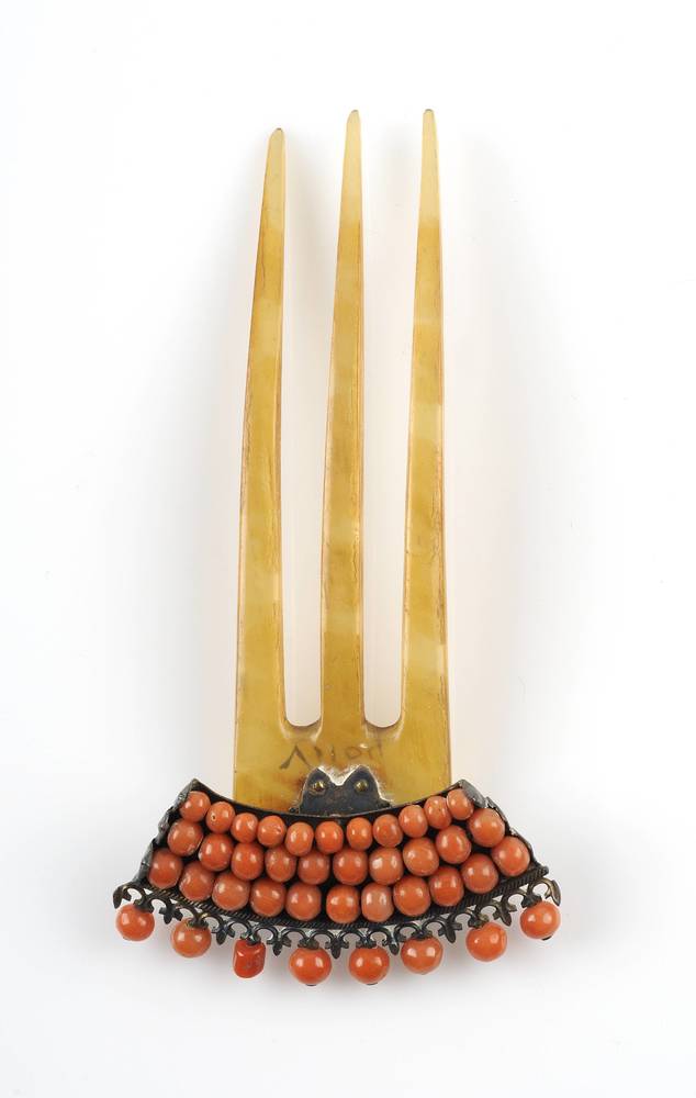 sierkam van been, zilver en bloedkoralen, begin 20e ...