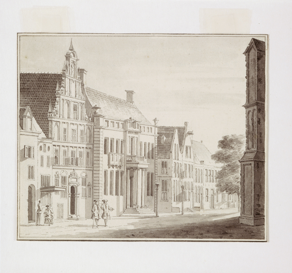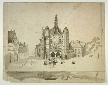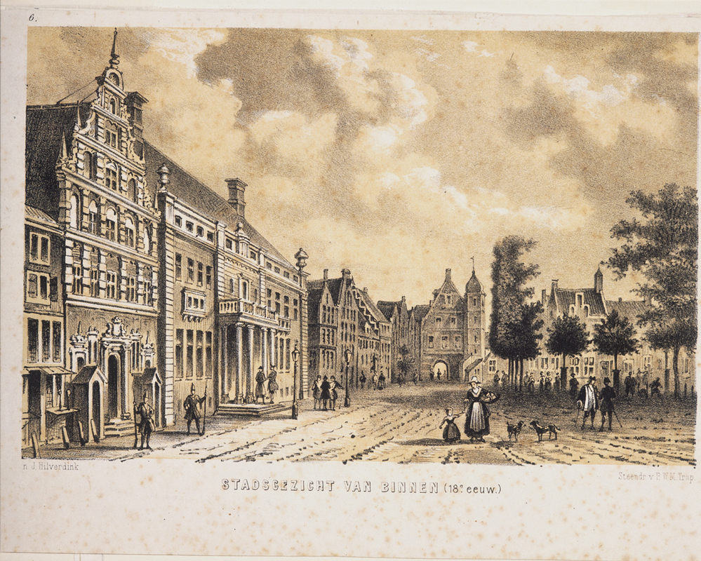 Deventer markt op de Brink met Waag, bovenste helft ...