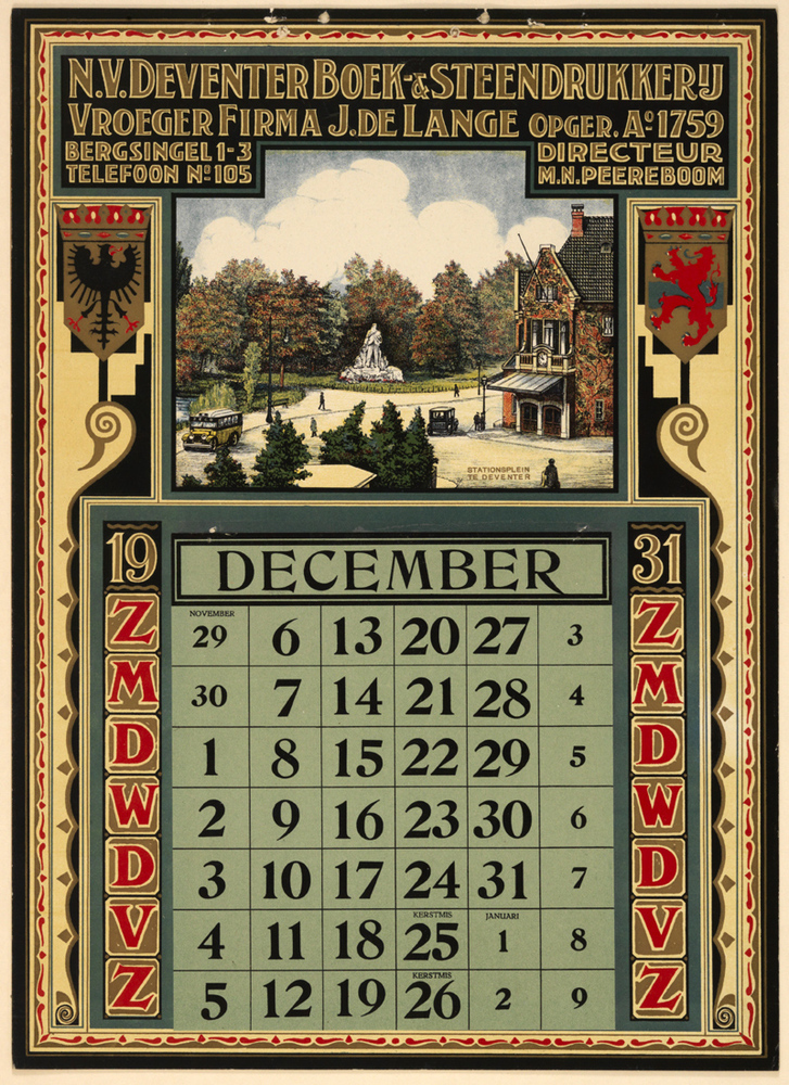1) Kalenderblad december 1931 met afbeelding van Sta...
