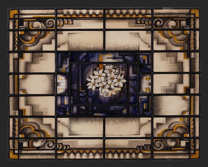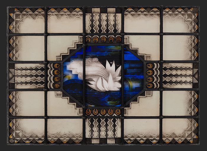 Glas-in-loodraam Van Nelle, met rechthoekig middenpa...