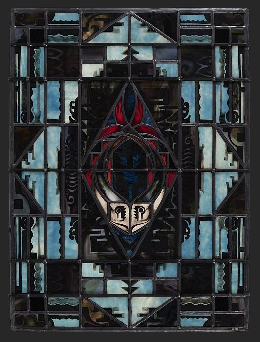 Glas-in-loodraam Van Nelle, met ruitvormige medaillo...
