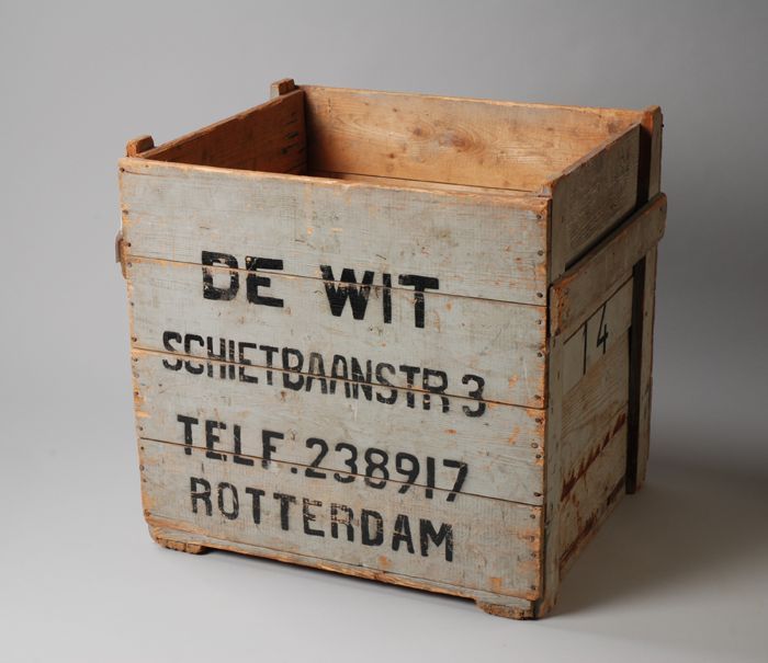 Grijze kist "De Wit, Rotterdam", zonder deksel