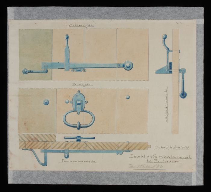 Tekening van de deurklink van de Waalsche kerk te Ro...