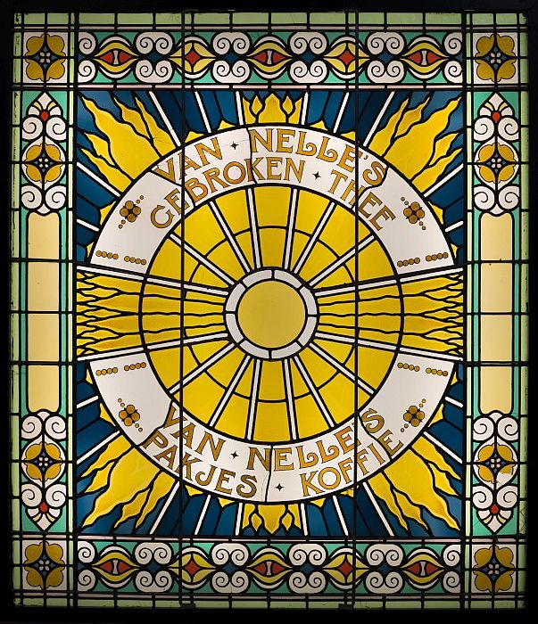 Glas-in-loodraam, lichtbak gemonteerd, "VAN NELLE´S ...
