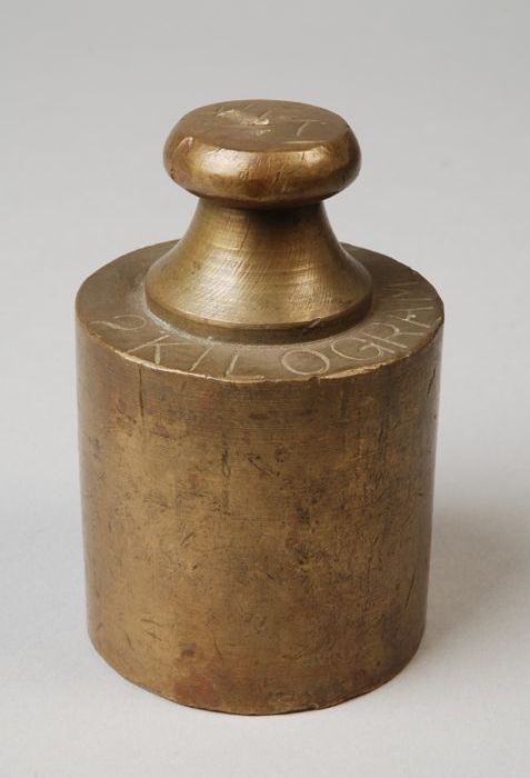 Knopgewicht van twee kilogram, met ijkletters
