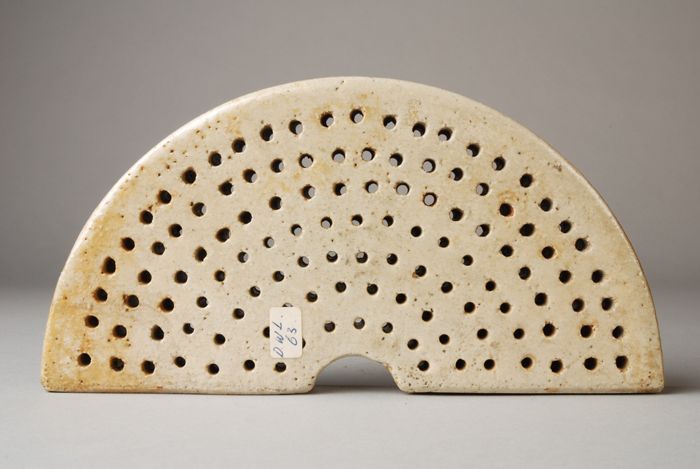 Twee beige geglazuurde, keramieken, geperforeerde, h...