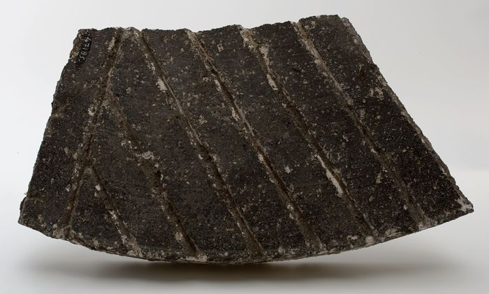 Fragment van een zwarte molensteen of maalsteen