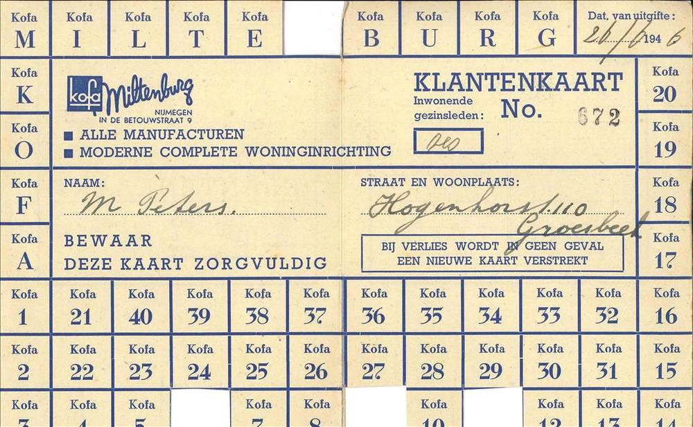 Klantenkaart van Kofa Miltenburg te Nijmegen voor M ...