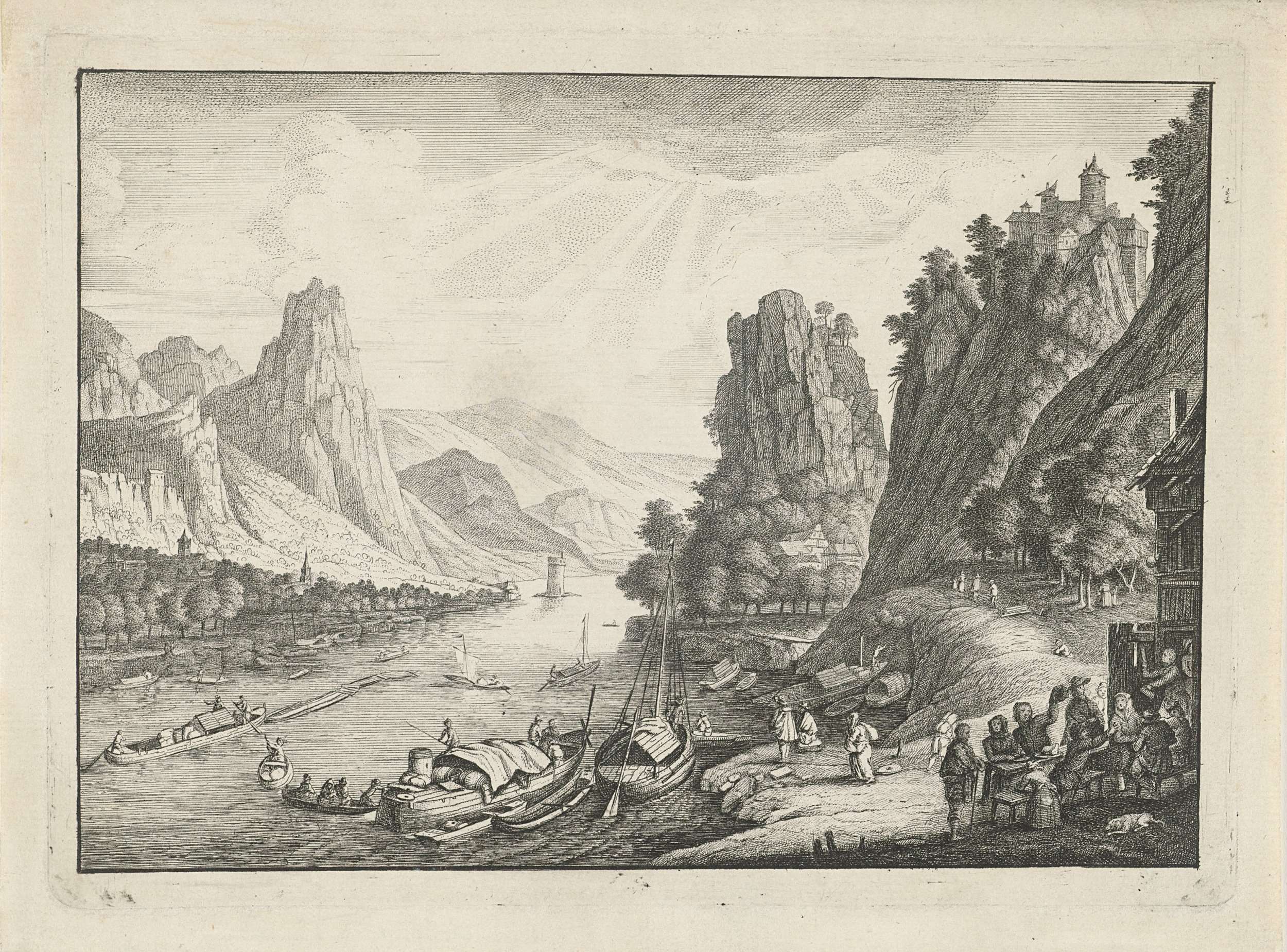 Rivierlandschap met bootverkeer