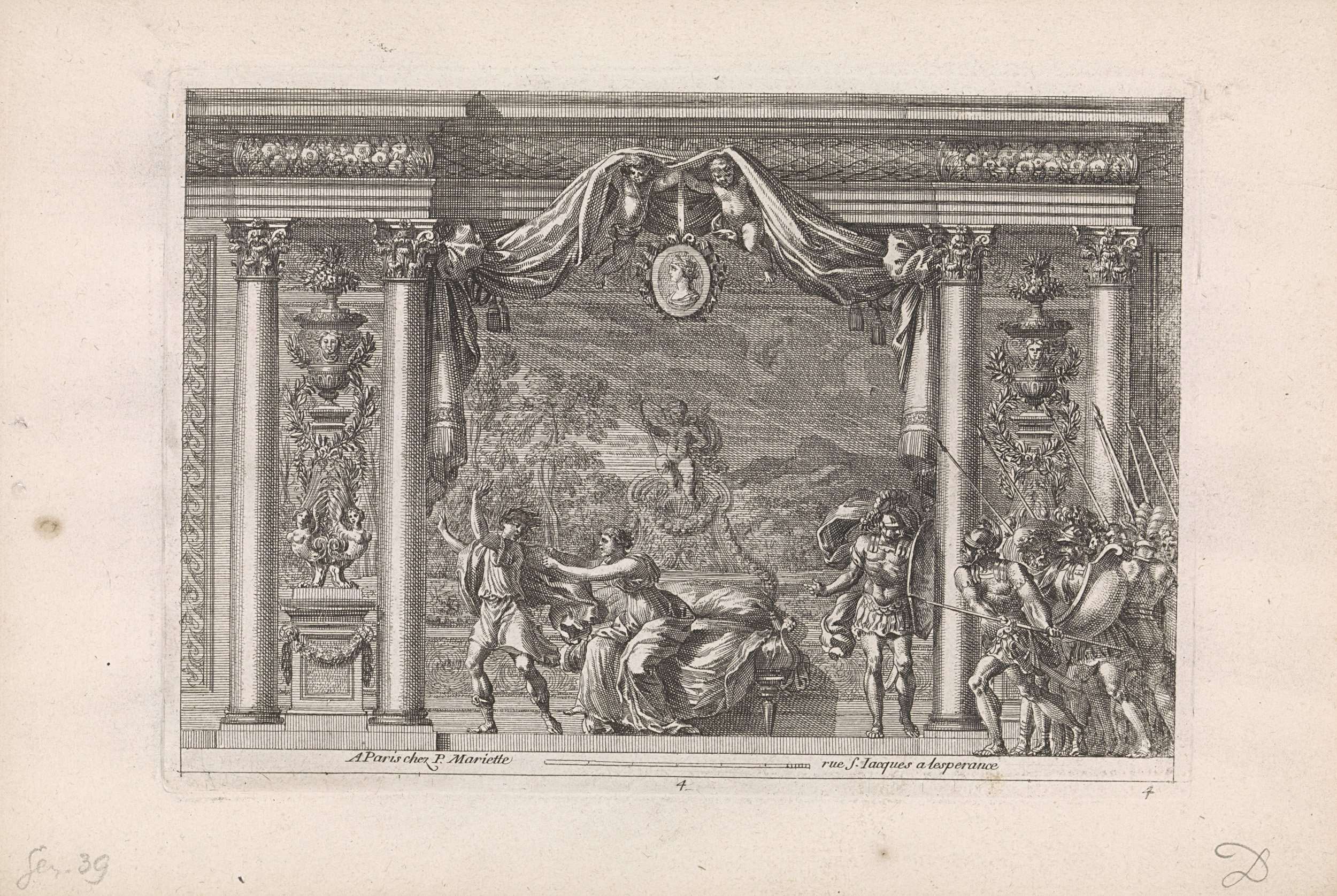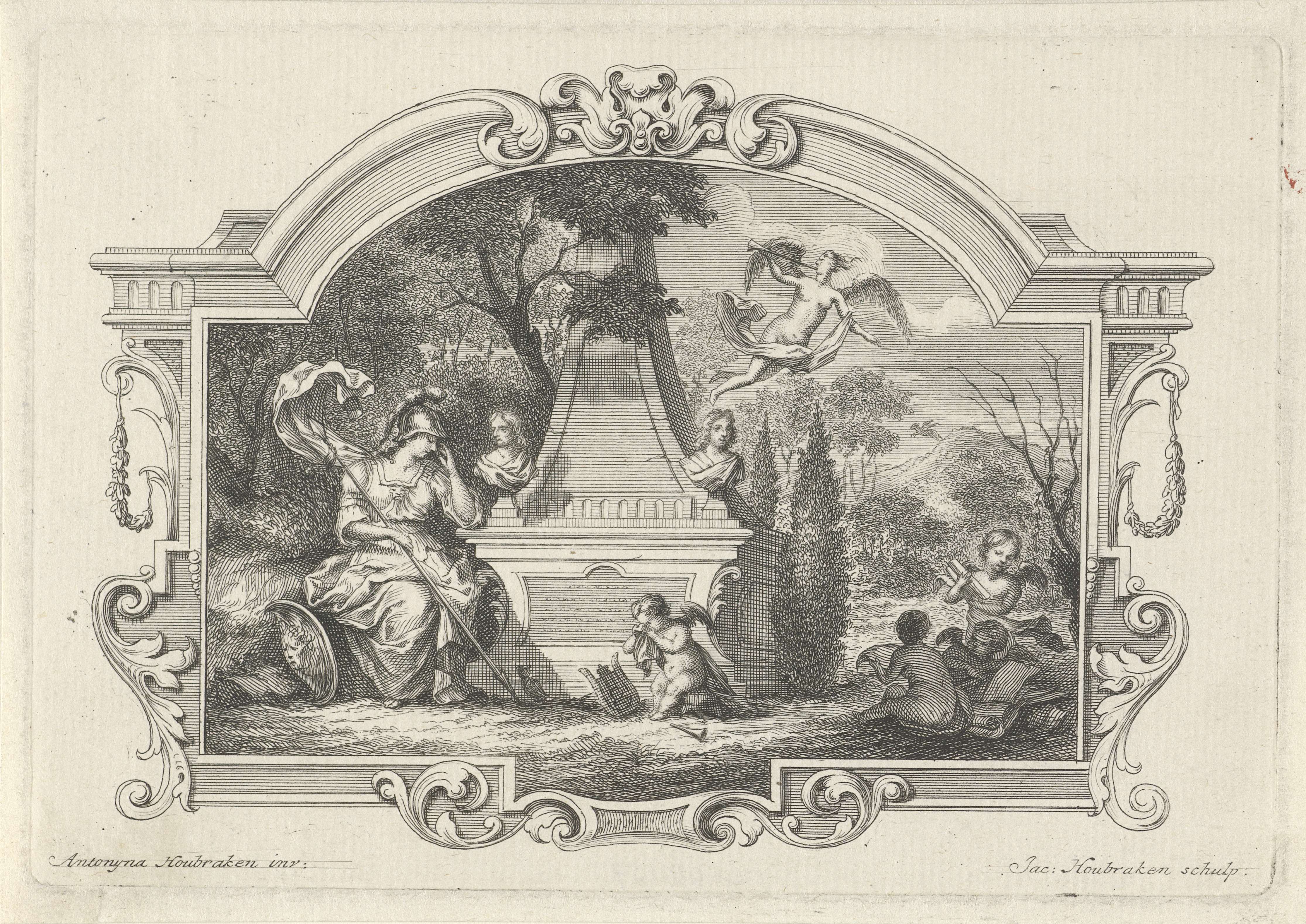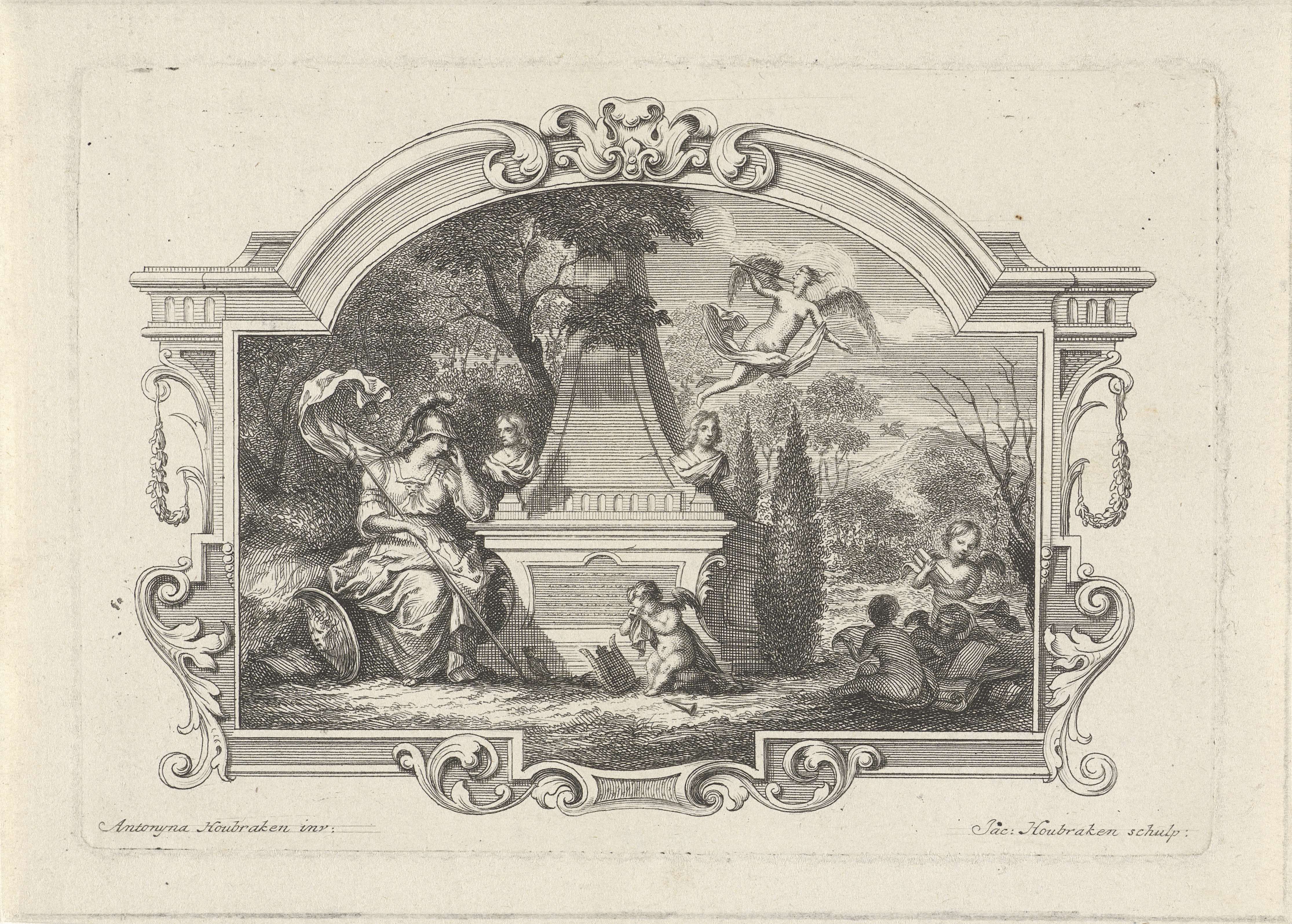 Minerva en putti treurend bij een graftombe