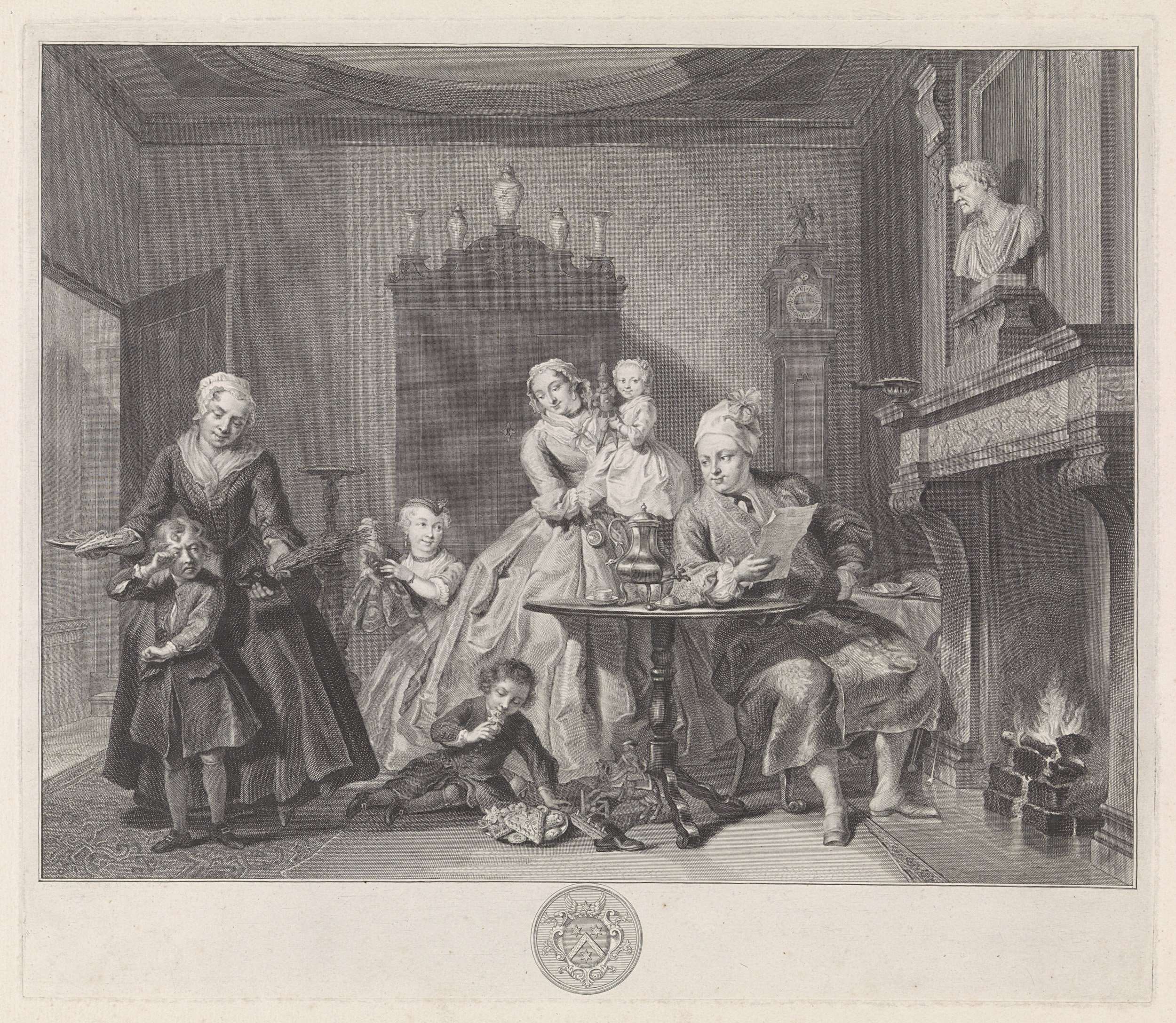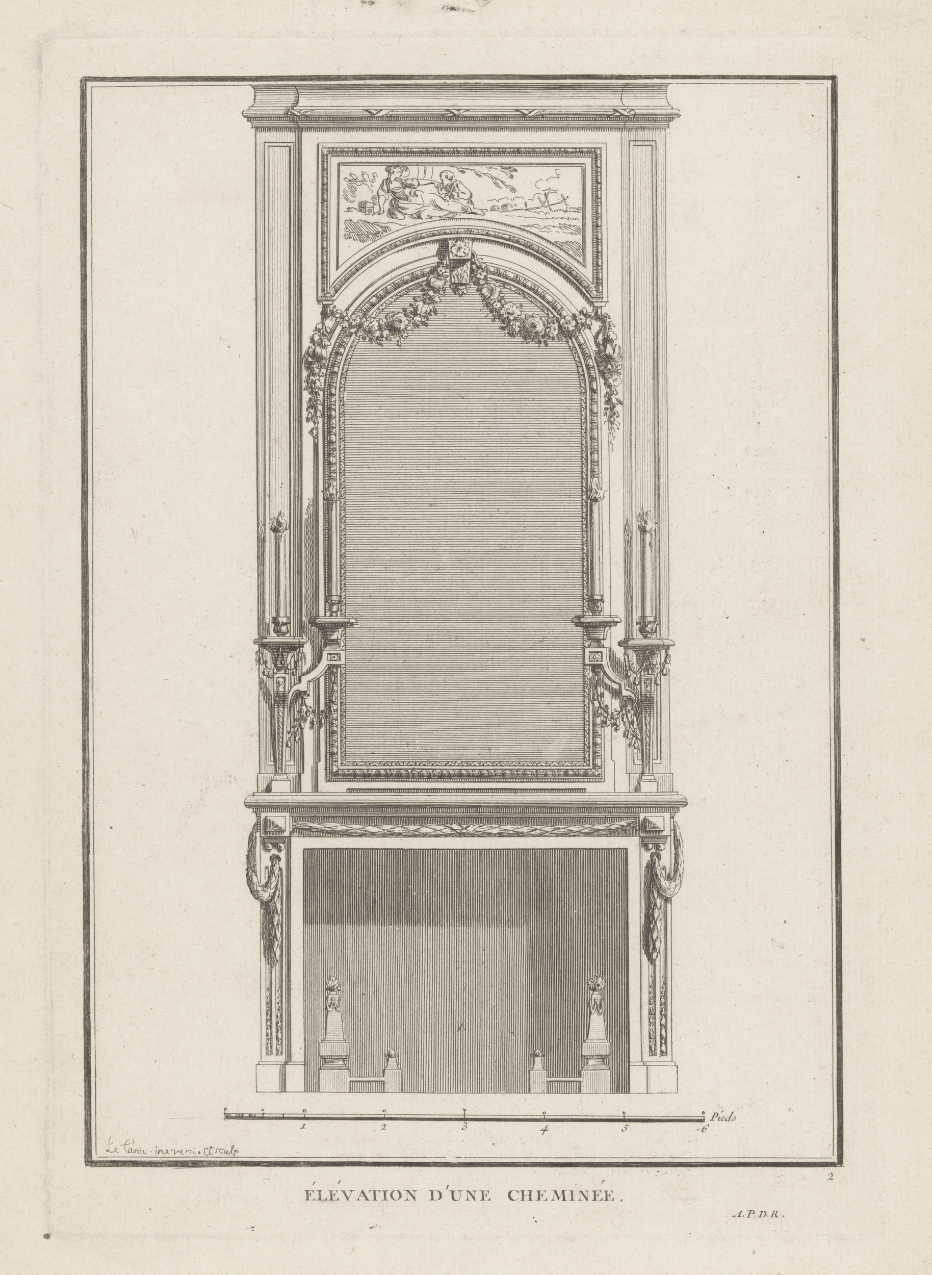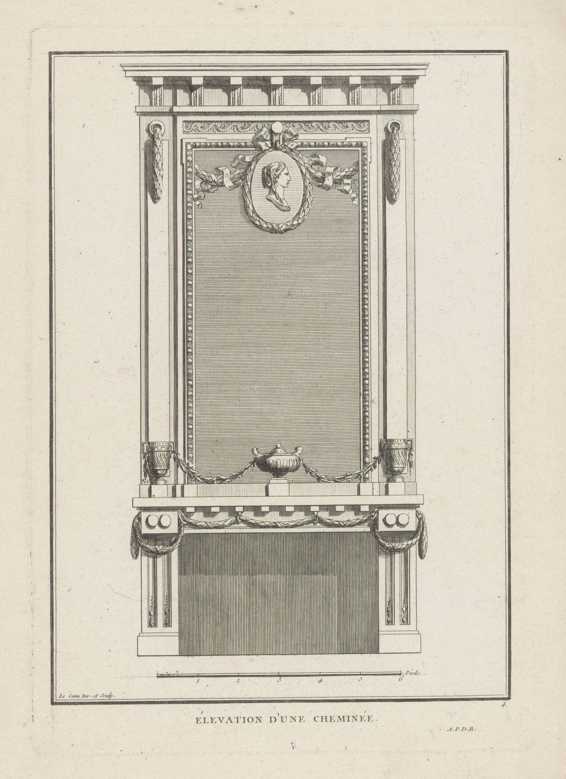 Haard met kandelaars en medaillon