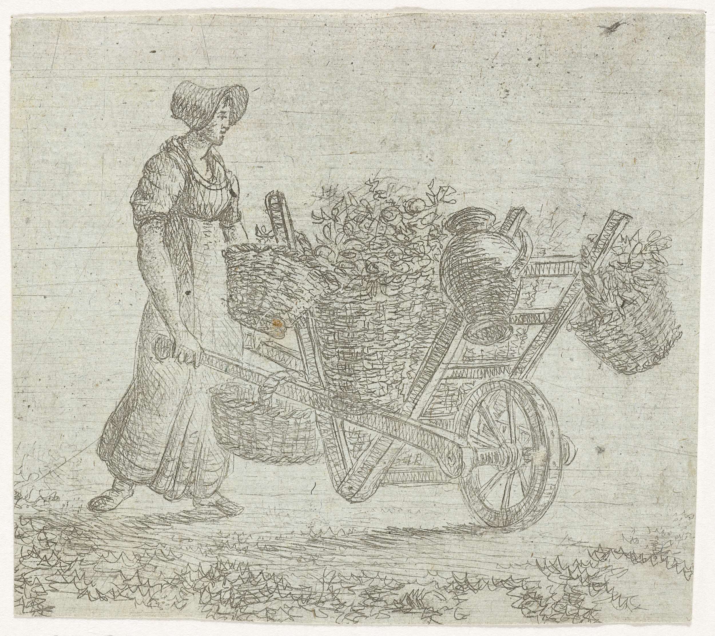 Vrouw met kruiwagen