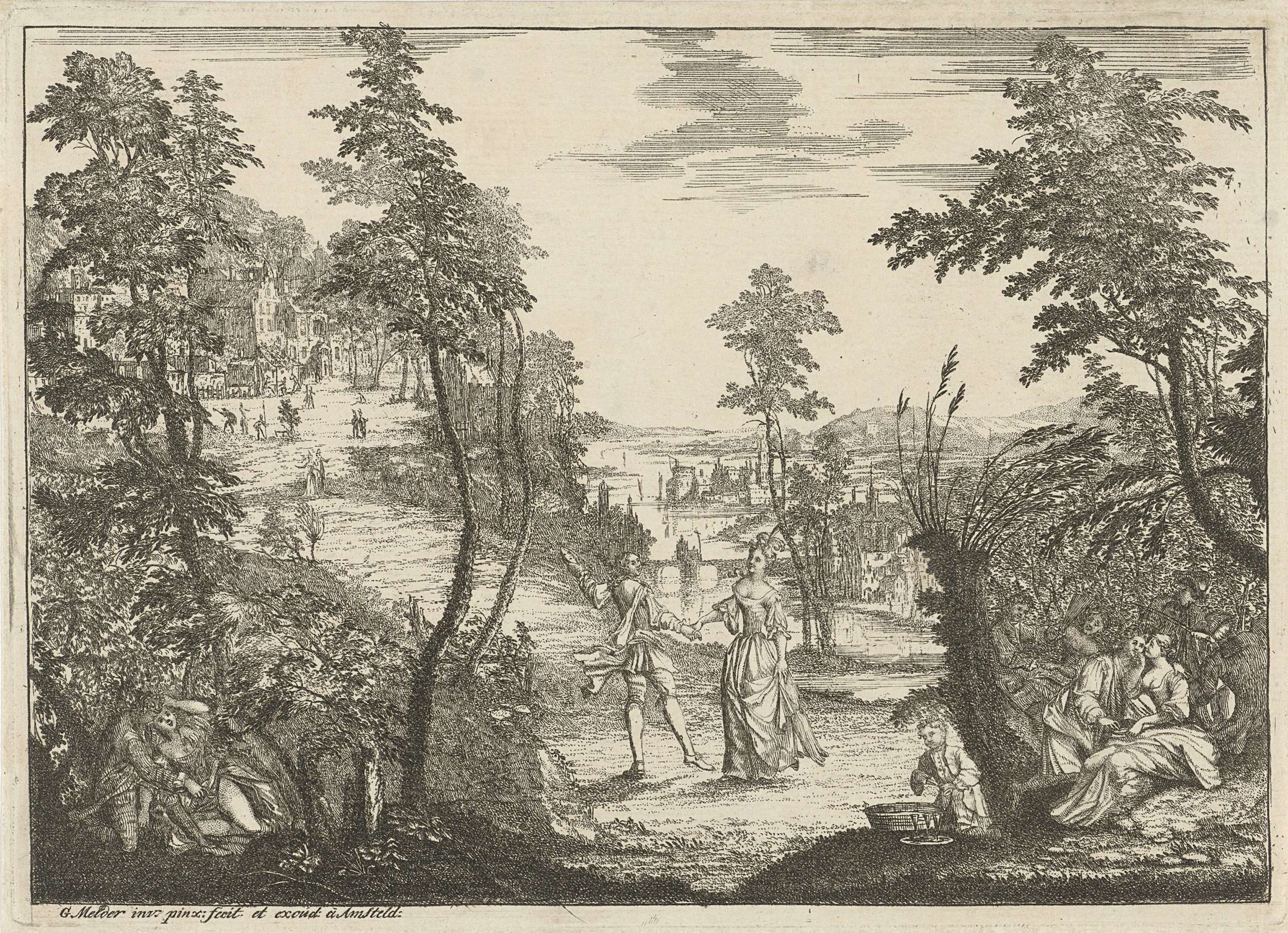 Landschap met vrijende paartjes