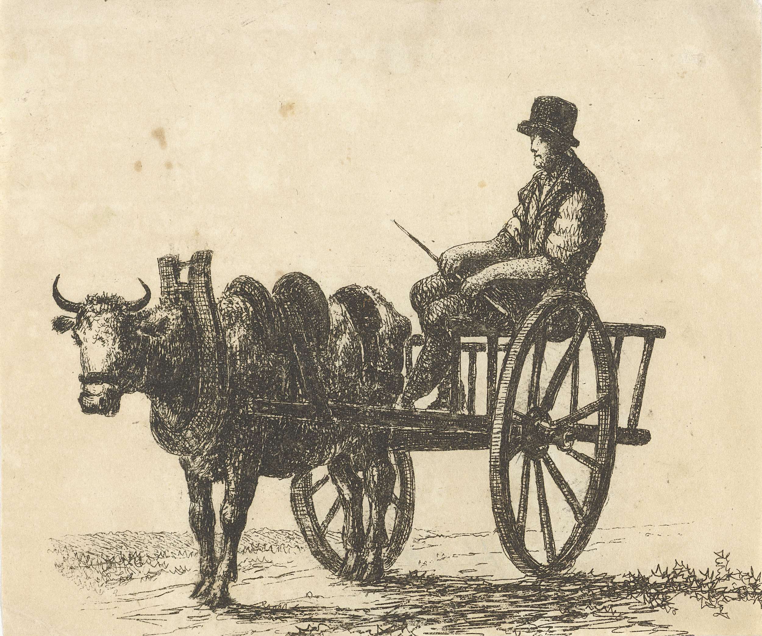 Man op een ossekar