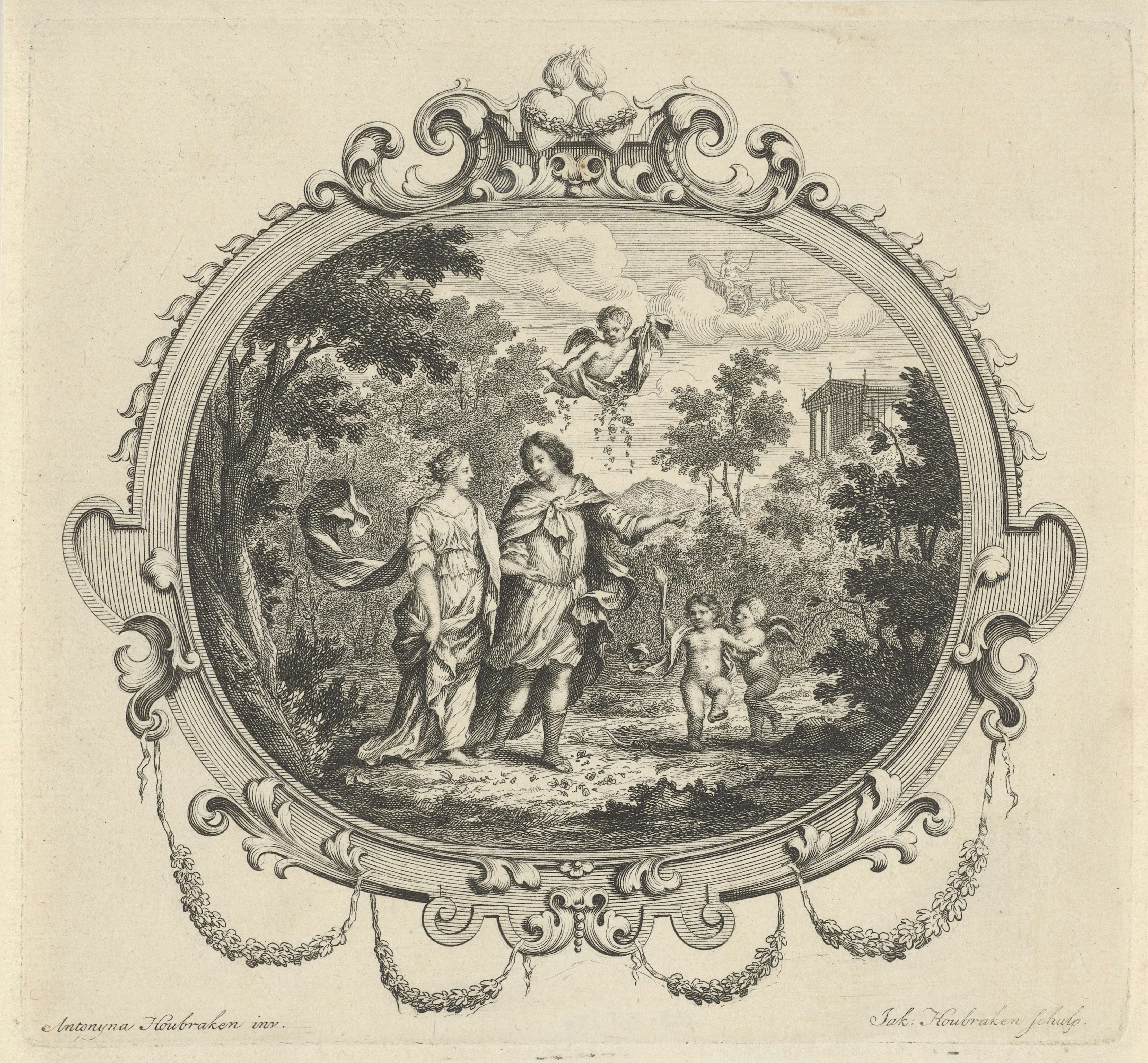 Wandelend paar vergezeld door putti