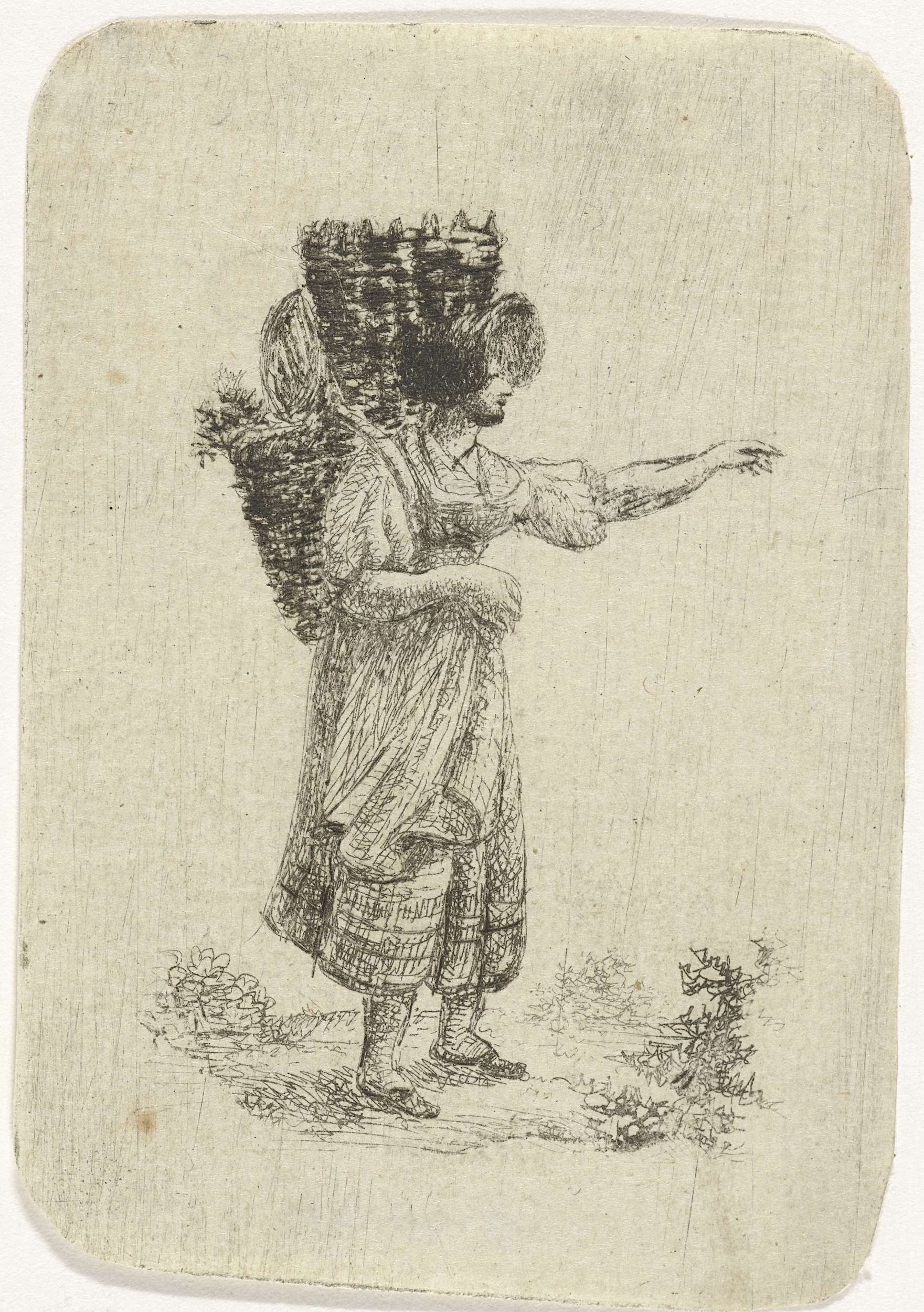 Vrouw met manden op de rug