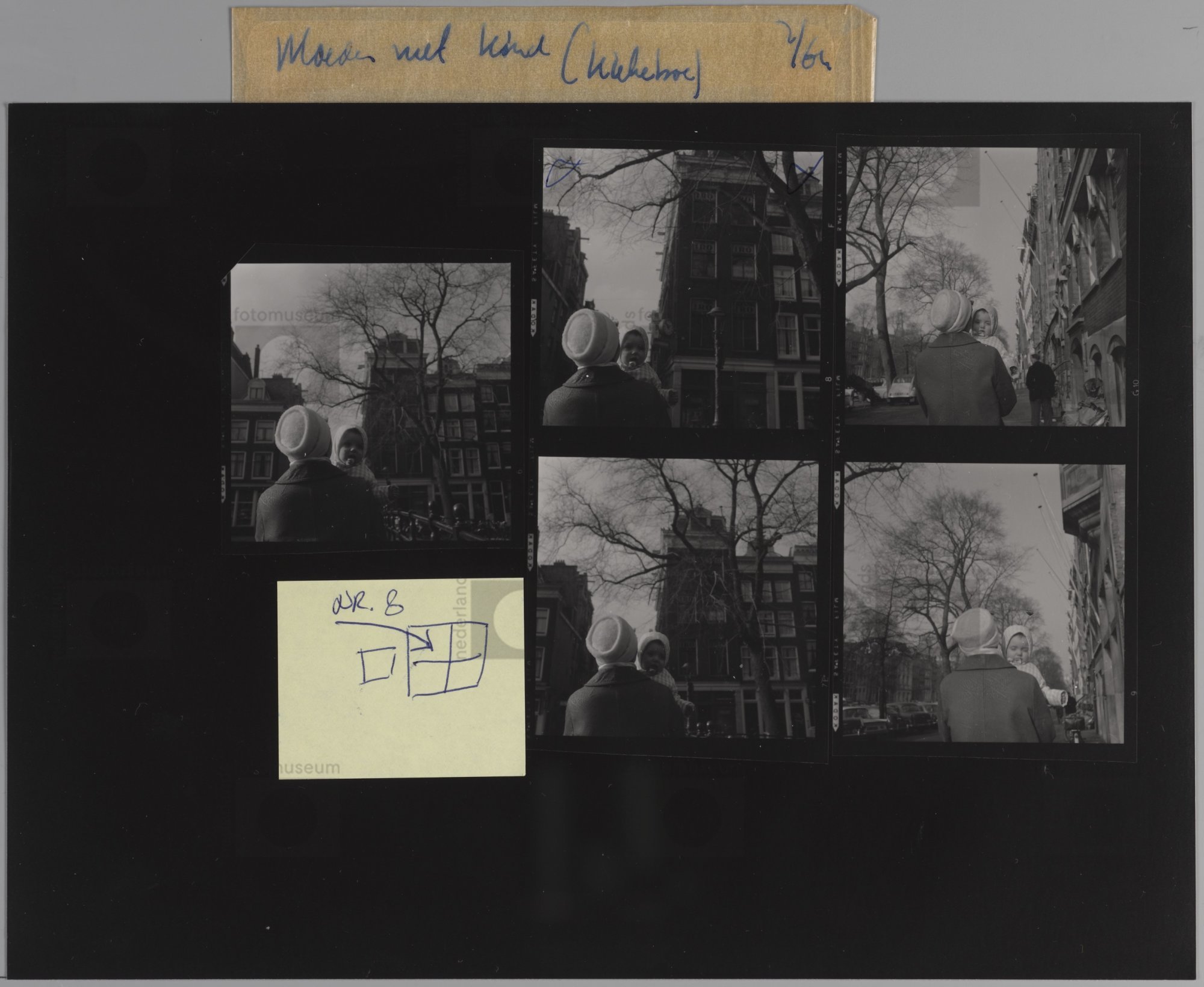 Amsterdam. Moeder met kind op de arm, loopt over str...