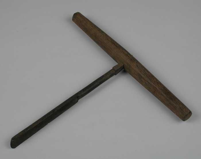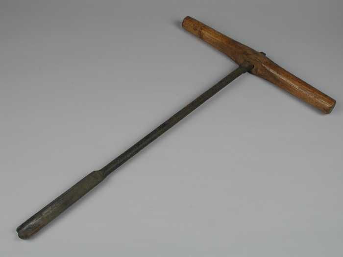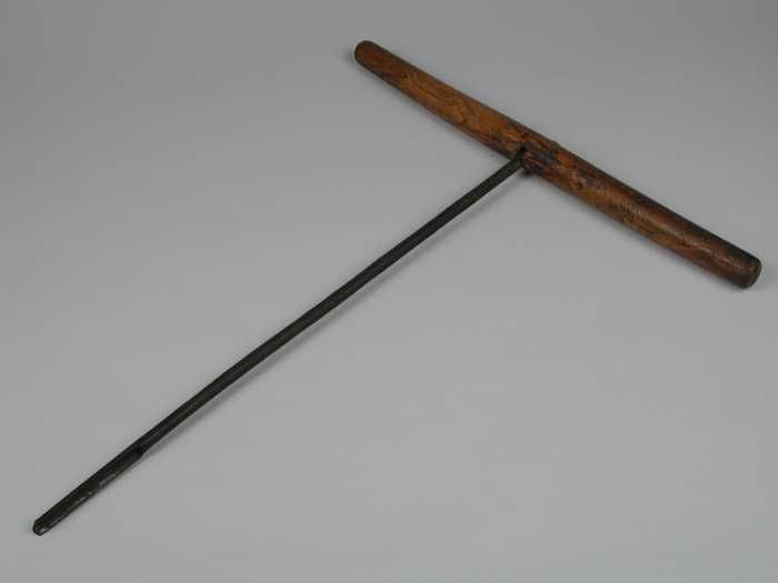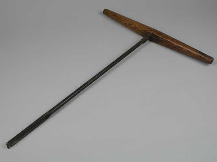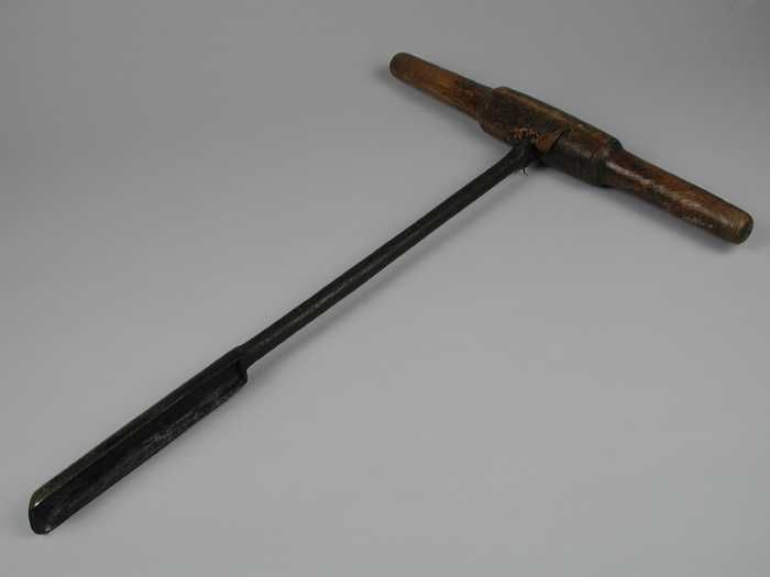 Lepelboor, lange staaf met smalle lepel en handgreep...