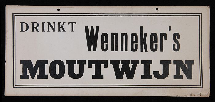 Reclameplaat in zwart-wit met opdruk "Drinkt Wenneke...