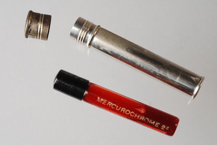 Metalen buisje waarin een glazen ampul wondontsmetti...
