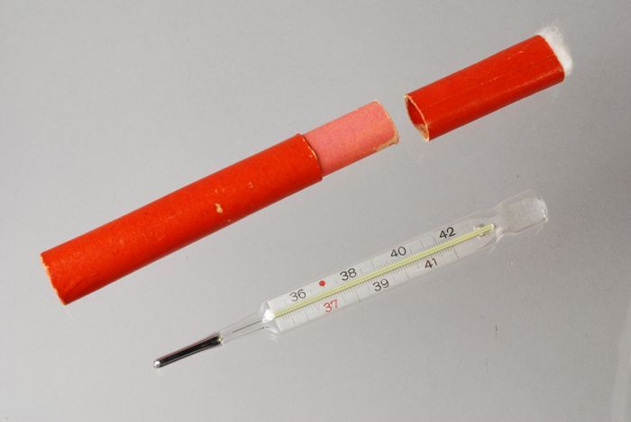 Glazen kwikthermomometer voor koortsmeting, in rode ...